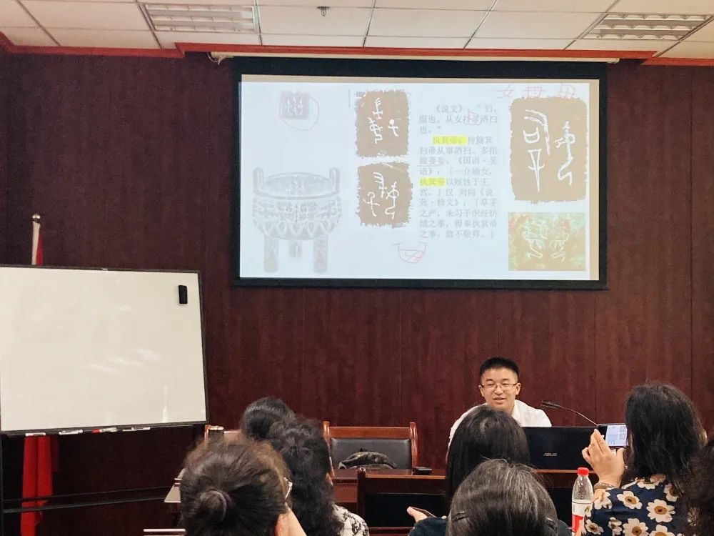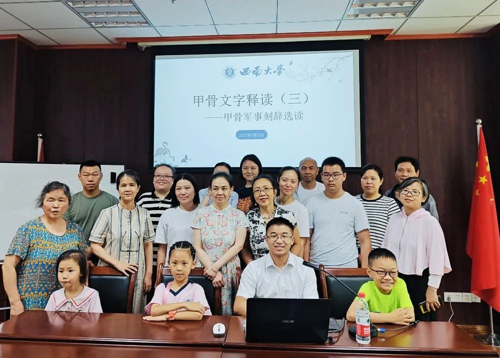 7月15日,沙坪坝区图书馆六楼会议室,每月一次的甲骨文学堂如约而至。西南大学英国上市公司365研究生喻威正在讲解甲骨文字识读系列课程。配合大屏幕上的一张张甲骨文图片,一个个古老而陌生的文字面目越来越清晰。学员们津津有味地听着,似乎忘记了窗外正骄阳似火。