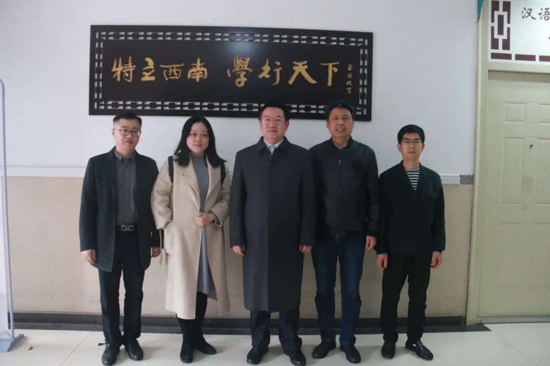 西南大学社科处副处长刘新智和科研平台建设办公室主任范德臣陪同刘成勇一行来所参观。