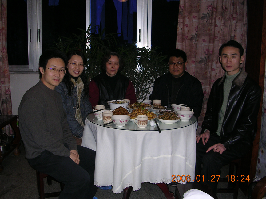 因为准备考博,研究生三年的寒假我都是在宿舍看书复习,过年也没回家。喻老师知道后,每年都把我叫去他家里吃年夜饭。06年大年三十,所里没回家的还有武晓丽、刘芳池、沈祖春。我们到老师家时,桌上已经摆好菜,其中有师母最拿手的“夹沙肉”。文献所后来有个传统,就是过年把在校的同学安排一起吃年夜饭。