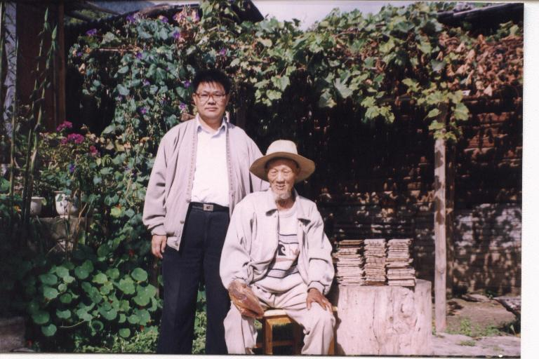 (喻老师这件夹克穿得时间很久,我们那几届研究生对这件衣服很熟悉。这是1999年与白地大东巴和志本的合影)
