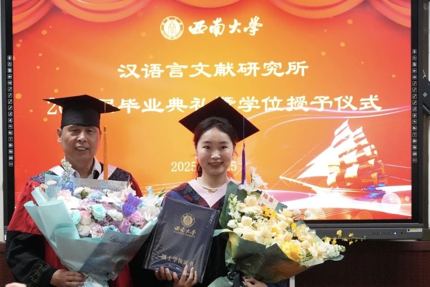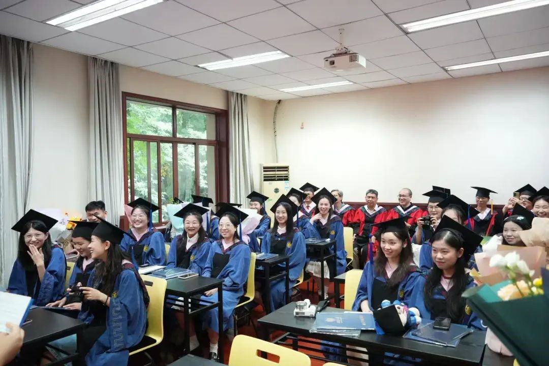 文献所的各位导师分别为学生拨穗,颁发毕业证书和学位证书,并合影留念。