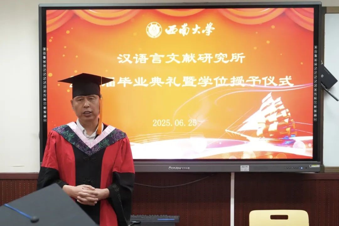 “展翅高飞,鹏程万里”,文献所所长孟蓬生教授对毕业同学的未来寄予厚望。他叮嘱同学们对父母、老师和社会要始怀有一颗感恩之心,努力提高自己的道德修养和专业技能,主动承担家庭、社会和时代的责任。