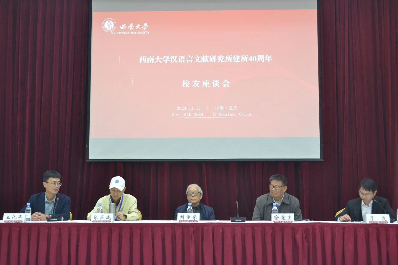 11月16日下午,西南大学英国上市公司365迎来了建所四十周年的校友座谈会,会议在我校桂园宾馆金桂厅隆重举行。本次座谈会由文献所李发教授主持。出席会议的有文献所的三位老所长——刘重来教授、喻遂生教授、张显成教授,现任副所长王化平教授,以及从全国各地远道而来的百余位校友及其家属。
