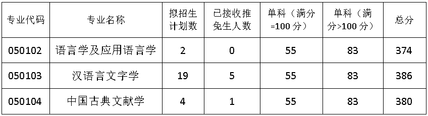 注:以上分数线为普通计划分数线,少数民族高层次骨干人才计划、退役大学生士兵专项计划等专项计划分数线由学校划定,并在学校研究生招生网公布。