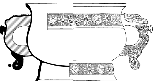 尺度重量:流尾間距19.1、柱高3.5、柱間距9.2、腹深9.6、通高20.7釐米。重830克。容積225毫升。