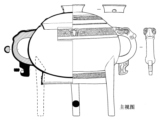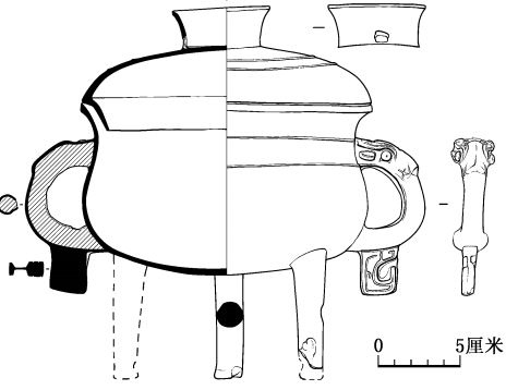 尺度重量:蓋徑14.7、口徑13.1、高5.5、器耳間距27.6、口徑15、腹徑20.4、高20.4、通高24.6釐米。蓋重395、器重2240克。容積2600毫升。
