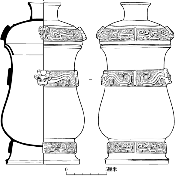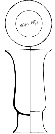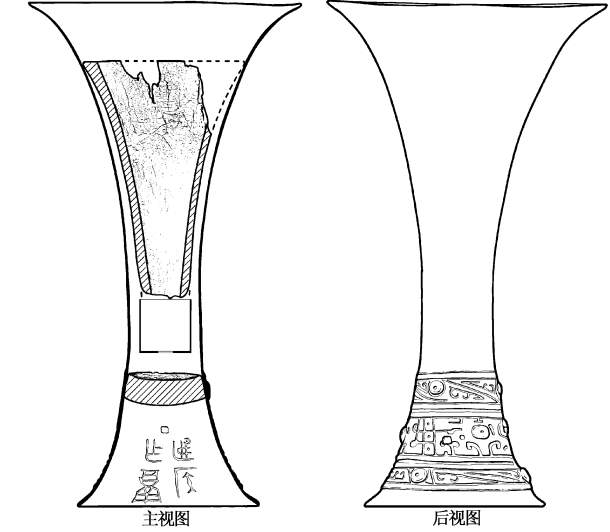 尺度重量:銅觚口徑12.2、圈足徑8、通高22.2釐米。木腔外口徑約7.2、殘高10.4釐米。銅管直徑2.2、高2.4、底部孔徑0.6釐米。