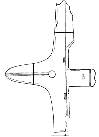 尺度重量:殘長33.2、寬22.8、援長15.2、援中寬5.4、內長6.8、寬4.2-4.4、厚0.2釐米。重330克。
