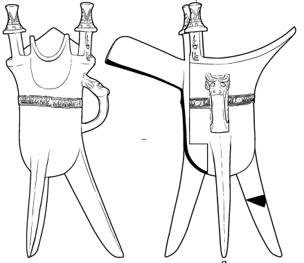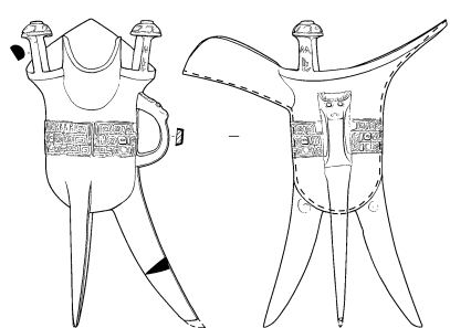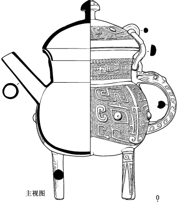 尺度重量:流尾間距17.2、雙柱間距8.4、柱高4.8、口寬8、腹深10.2、通高22.6釐米。重865克。容積205毫升。