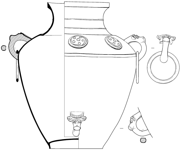 尺度重量:耳間距33.8、口徑33、腹最大徑32.2、高42釐米。重8860克。容積13100毫升。