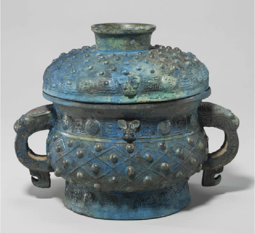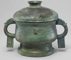 尺度重量:通蓋高25.6、器高17、口徑21.6、腹深12.3、足徑18.2、足高5.5釐米。重4400克。