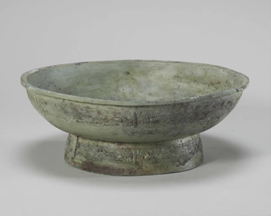 尺度重量:通高11、口徑29.9、腹深7.9、足徑18.6、足高4.1釐米。重3130克。