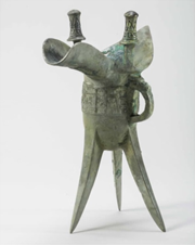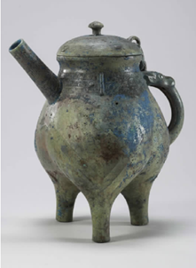 尺度重量:通柱高24、口徑8.2、流至尾長18.5、腹深9.5、柱高5.6、足高10.3釐米。重945克。