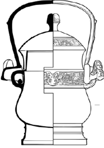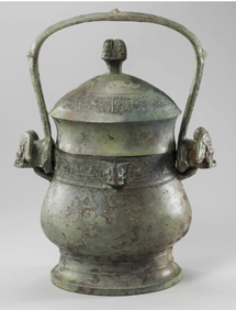 尺度重量:通蓋高29.8、器口徑12.1、腹深18.4,檔高6.2釐米。重3775克。