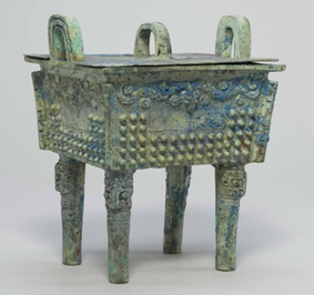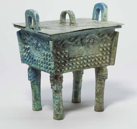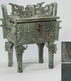 說明:方座簋之圈足底内中部懸一小鈴,挪動有聲。