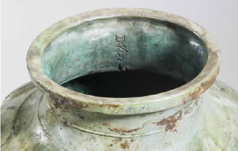 尺度重量:通耳高48.5、口長35.2、口寬25.3、腹深19.5、底長30.5、底寬21.1釐米。重22180克。