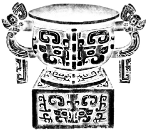 尺度重量:通耳高31、口徑23.4、腹深13.4、圈足高5.1、方座高10.9、邊長21.3釐米。重8825克。