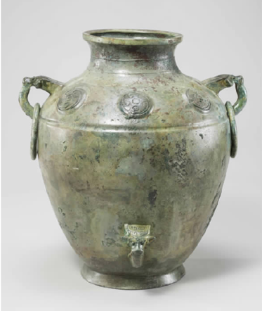 尺度重量:通耳高56.3、口徑42.1、腹深29.1、耳高10.3、足高21.3釐米。重26050克。