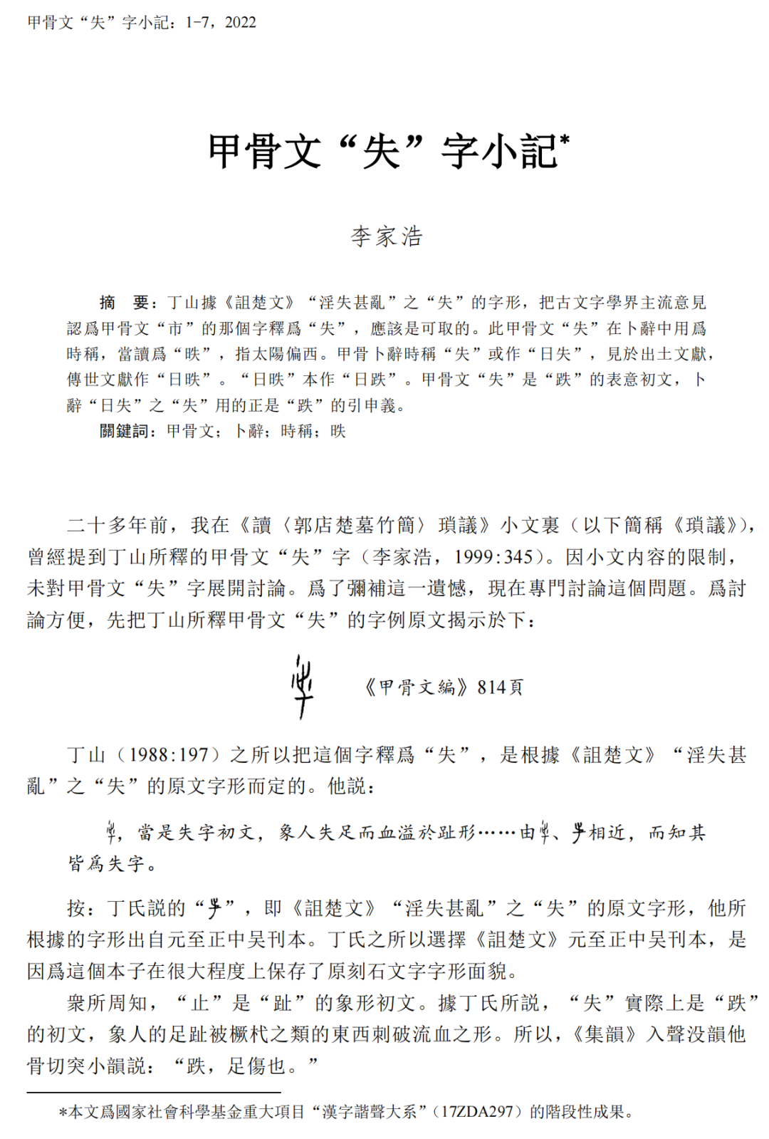 李家浩|甲骨文“失”字小记