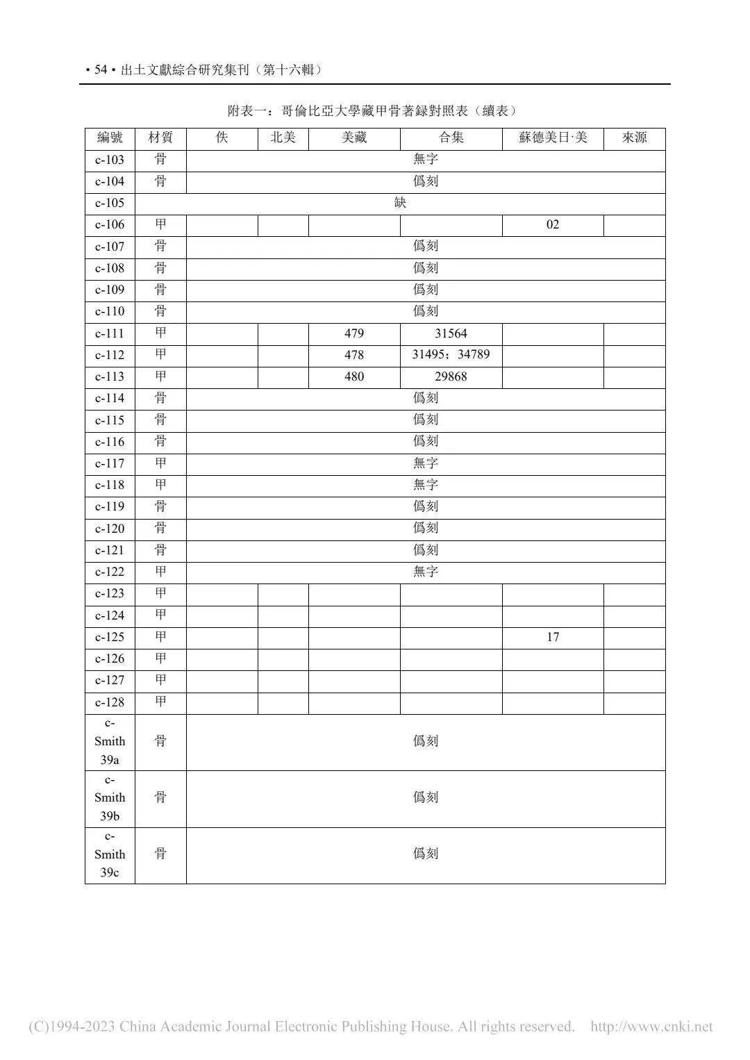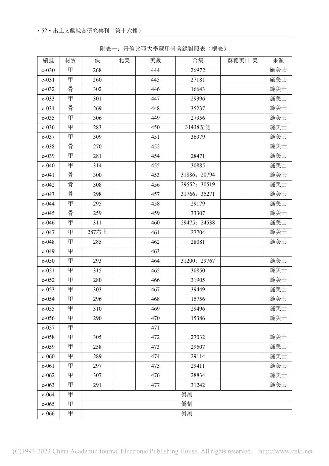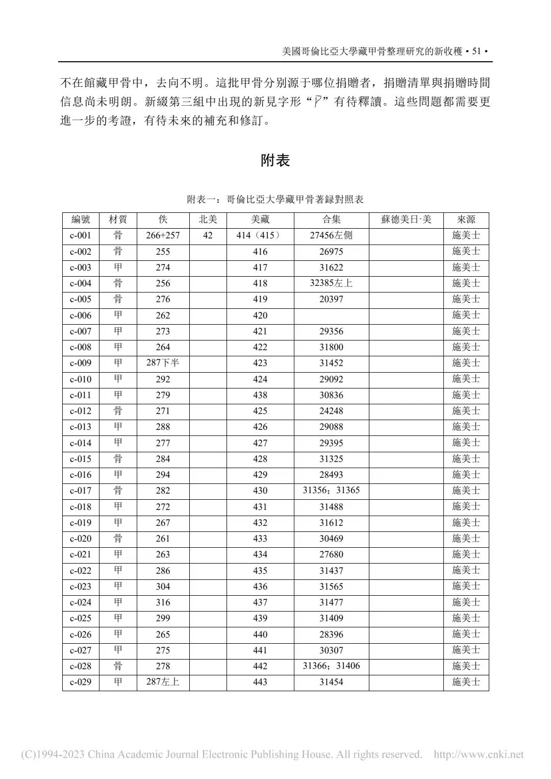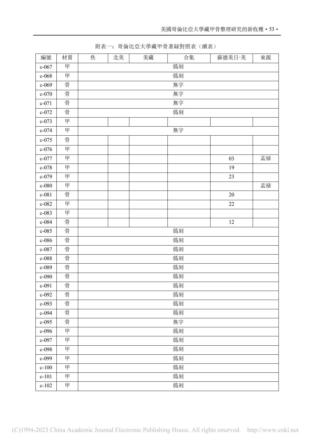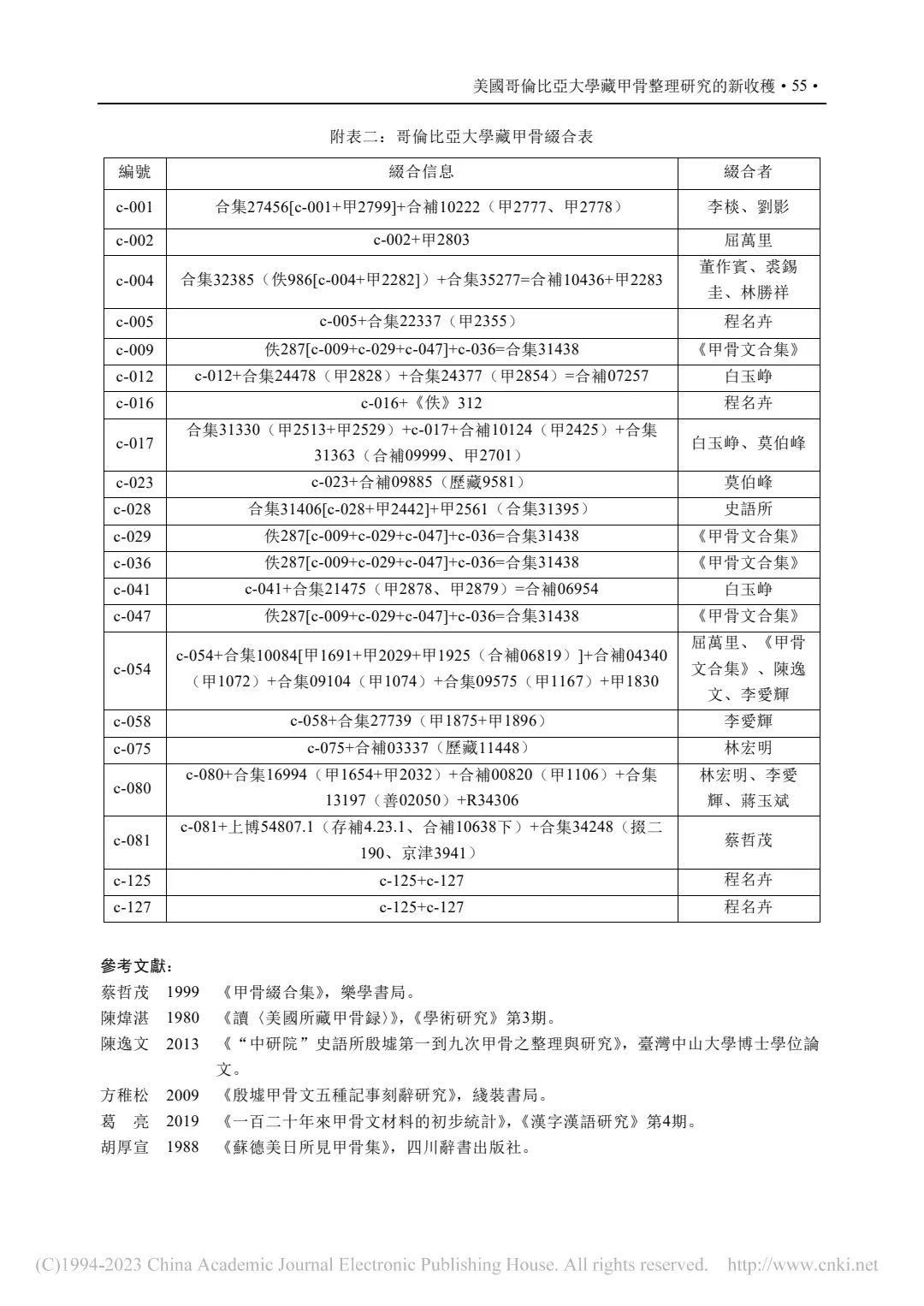②P55-附表二:哥倫比亞大學藏甲骨綴合表