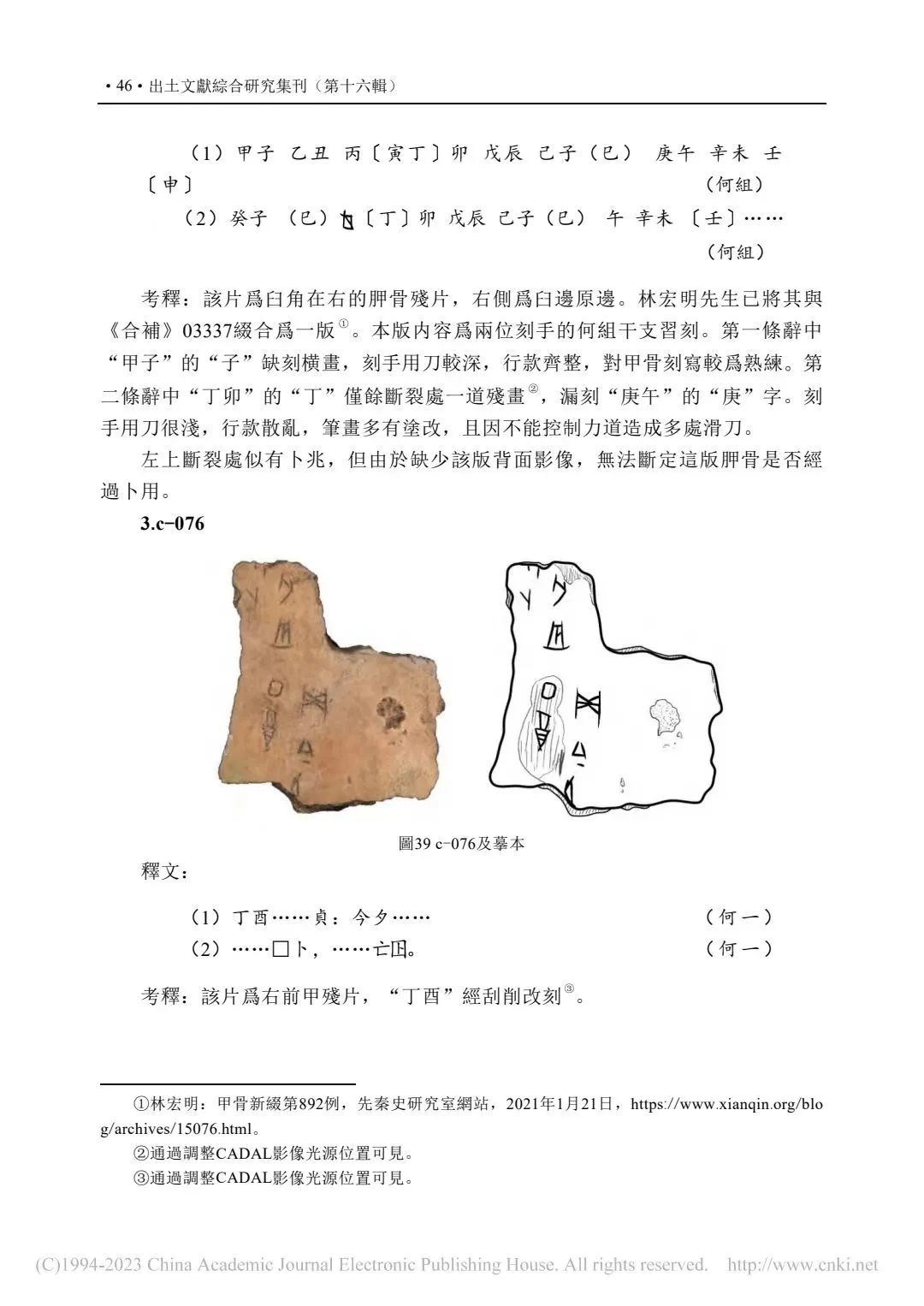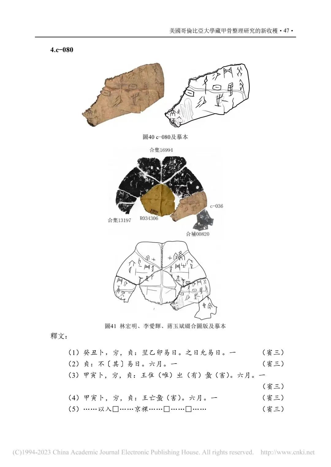c-001 | 合集27456[c-001+甲2799]+合補10222(甲2777、甲2778)+合集28148(甲2591、甲2592) | 唐蘭、郭若愚、劉影、周忠兵 |