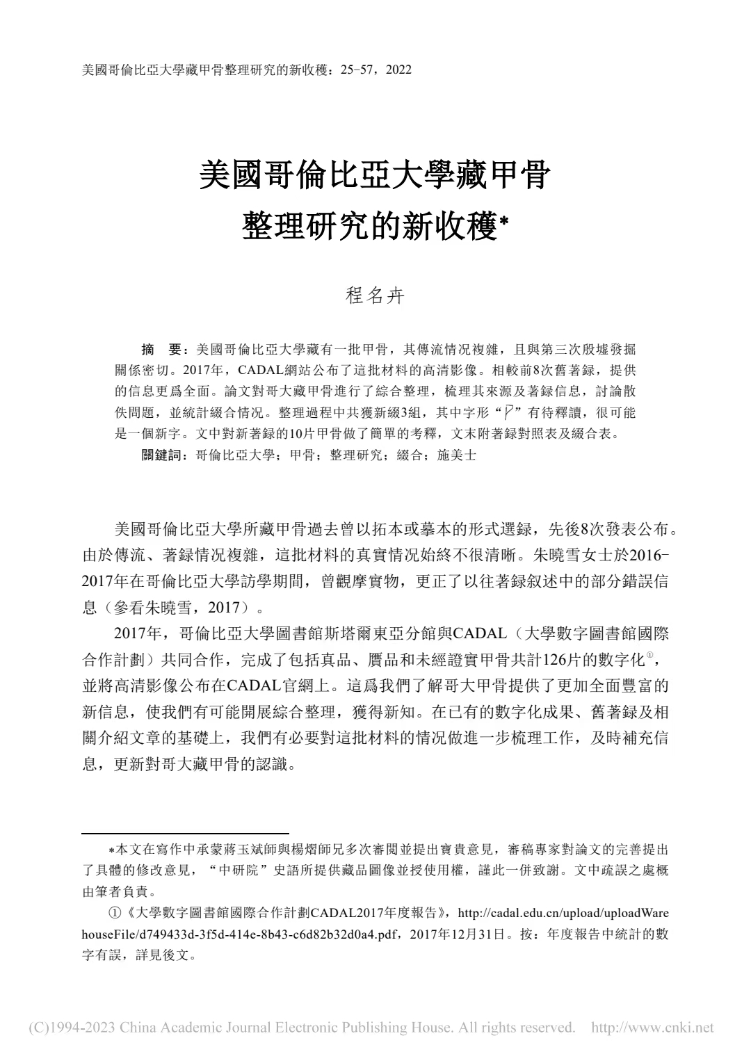 程名卉|美國哥倫比亞大學藏甲骨整理研究的新收穫