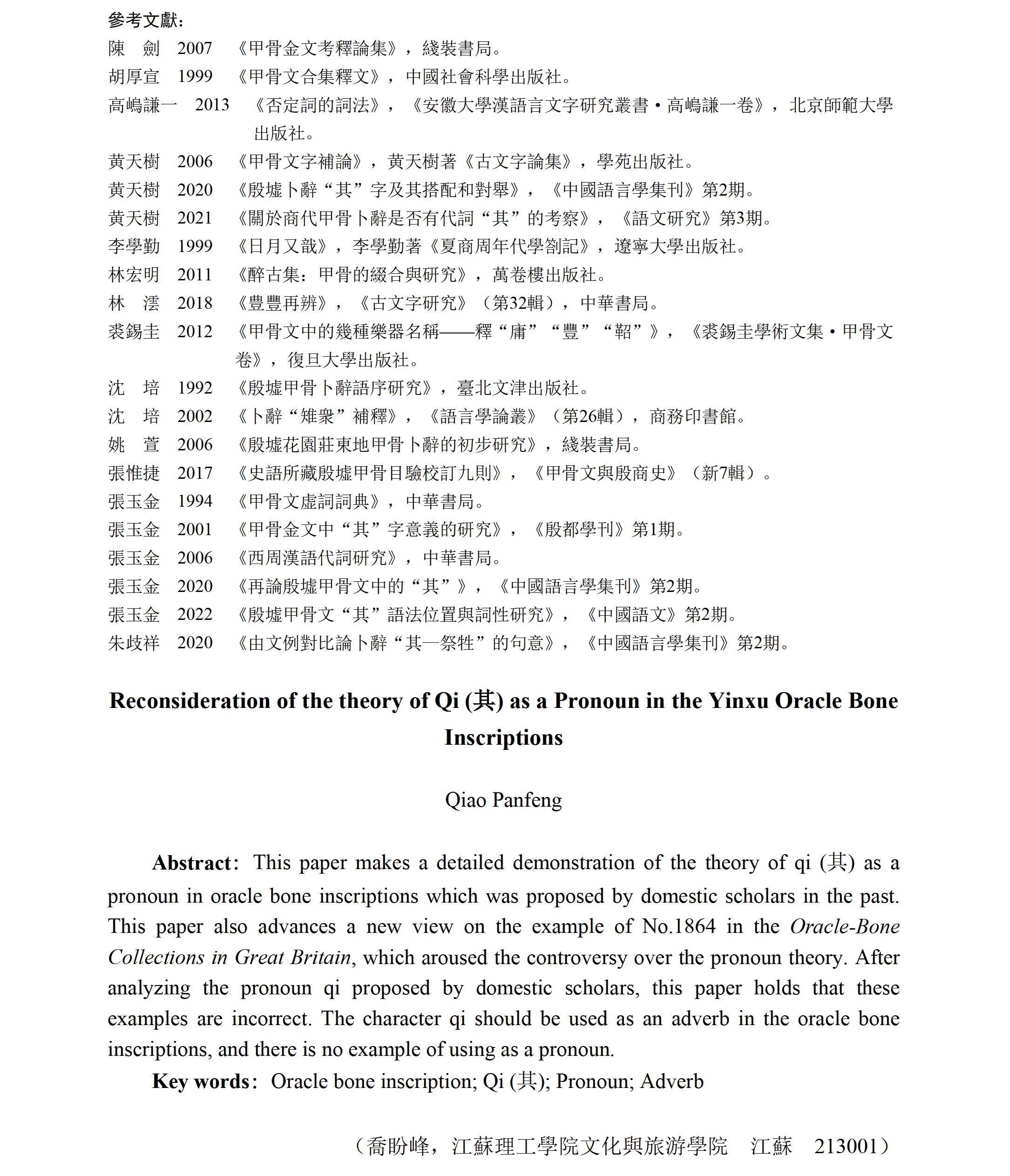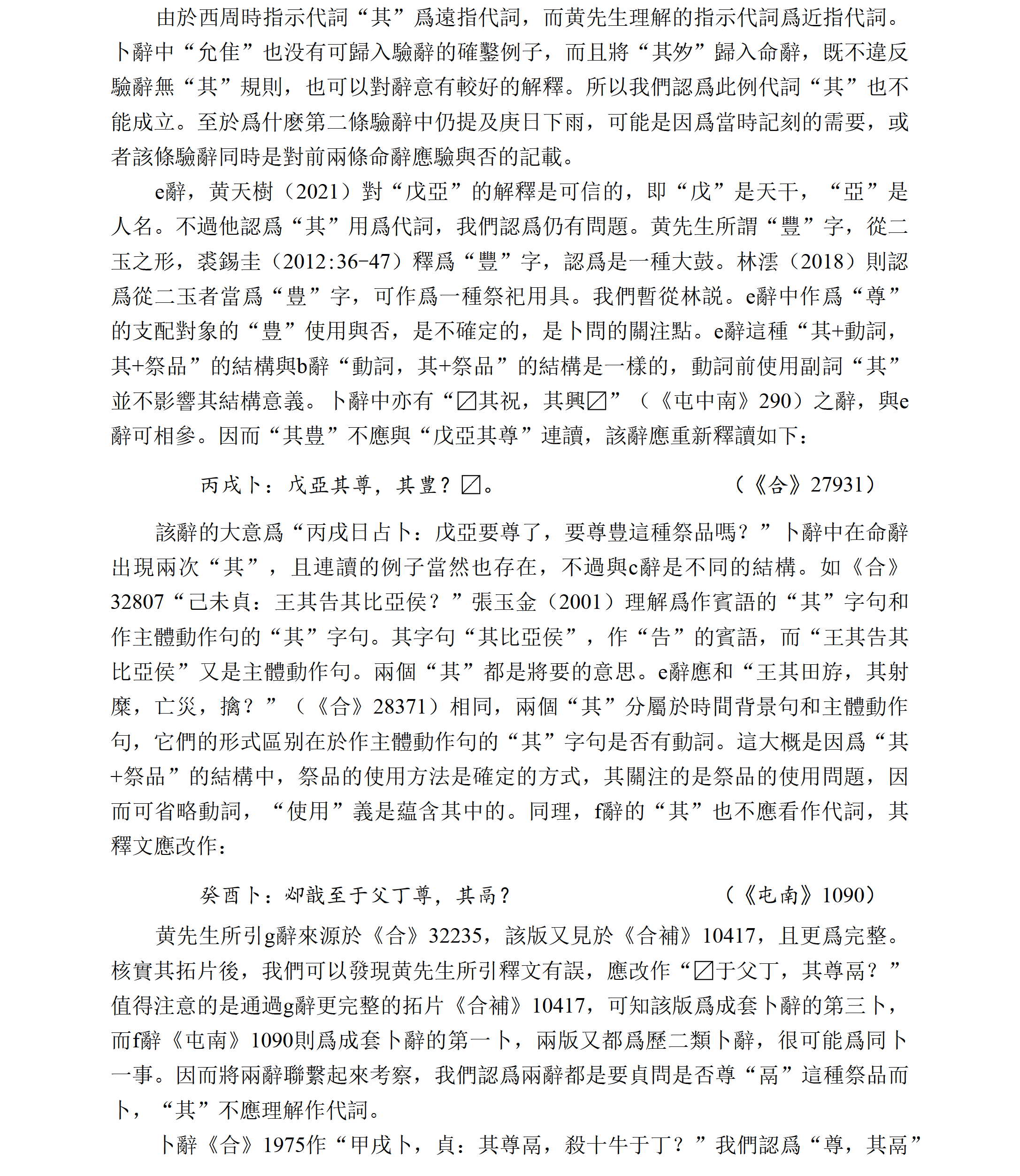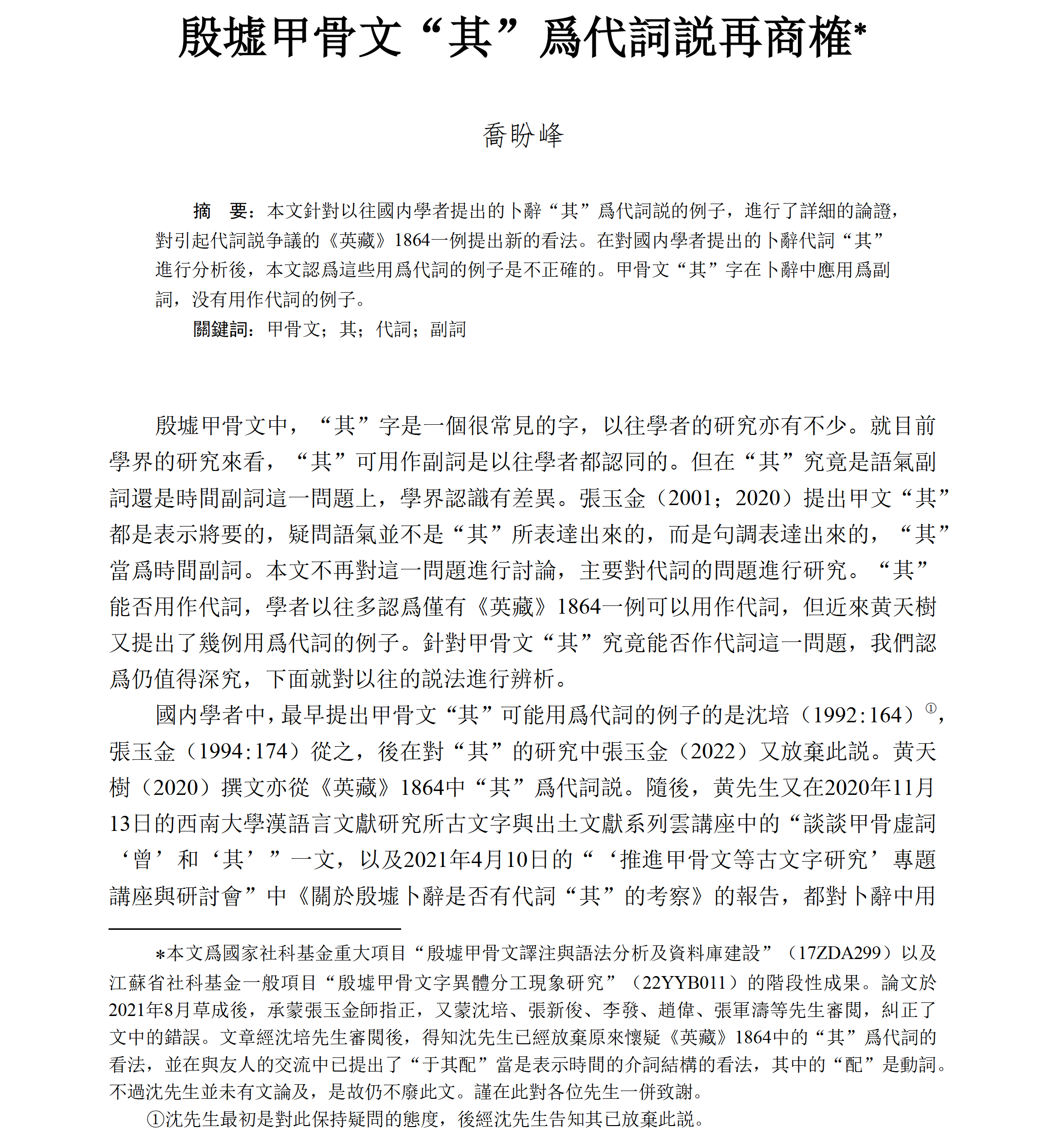 喬盼峰|殷墟甲骨文“其”爲代詞説再商榷
