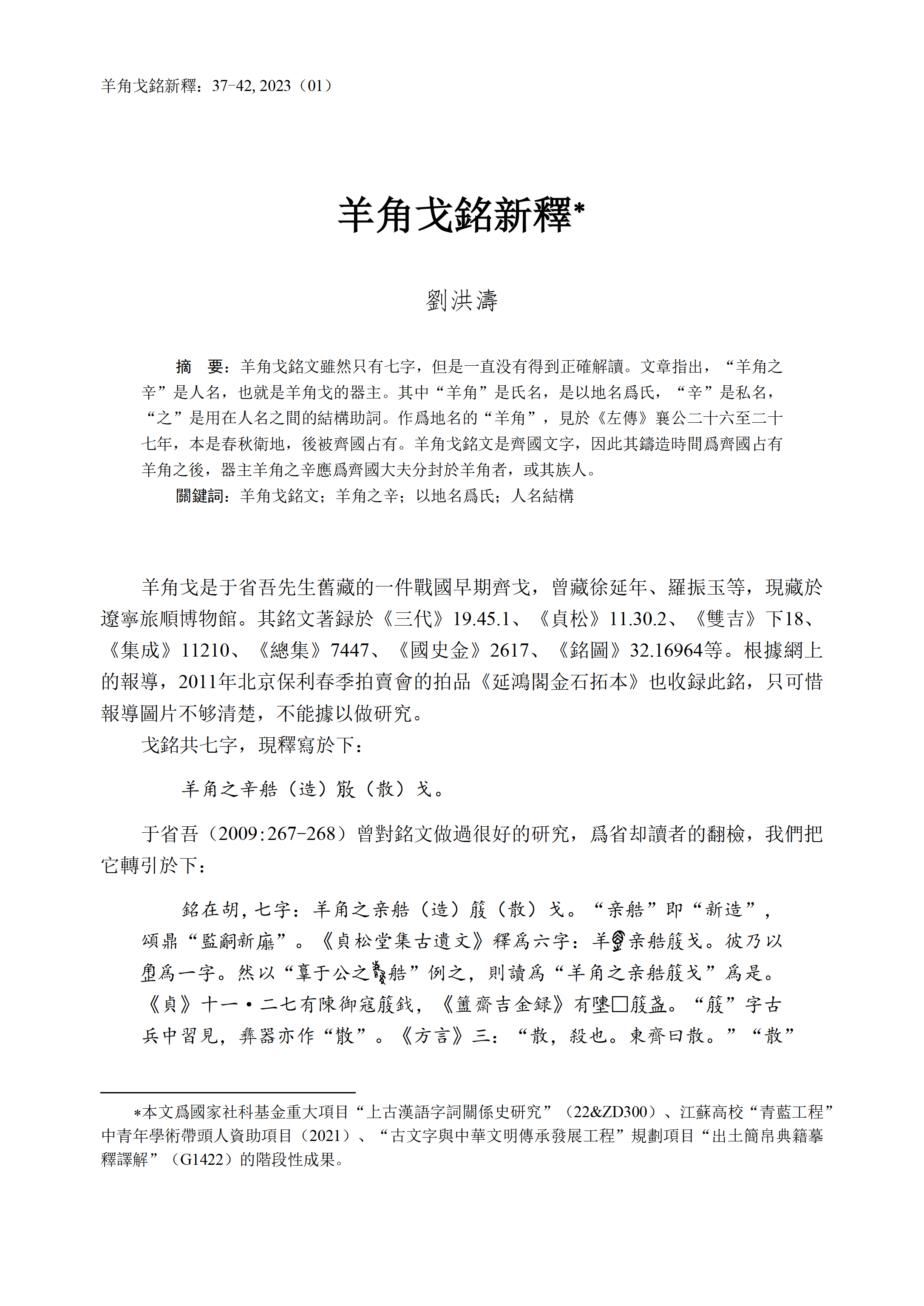 劉洪濤 | 羊角戈銘新釋