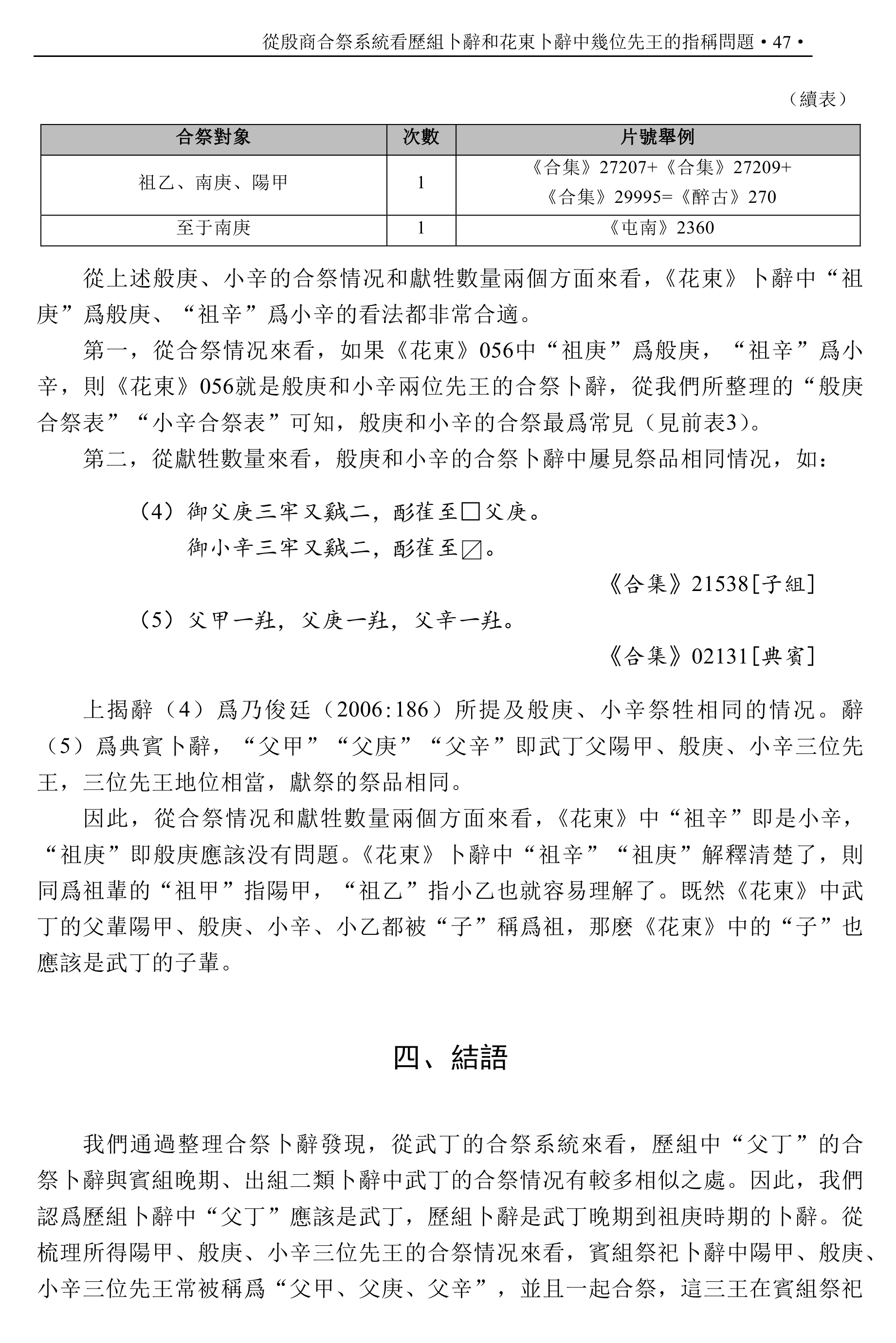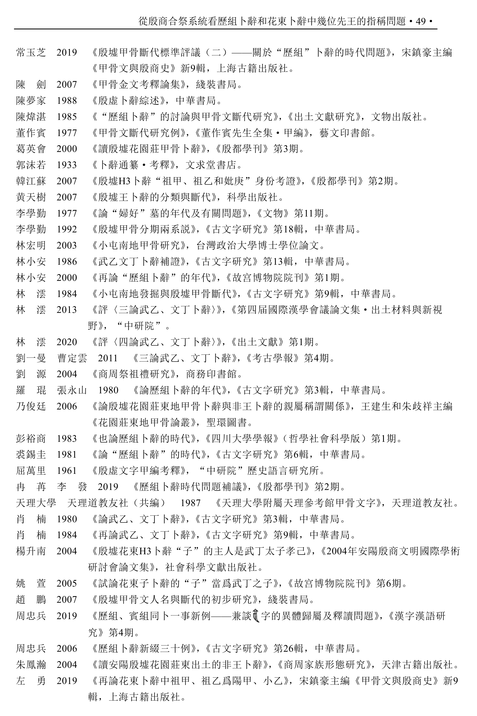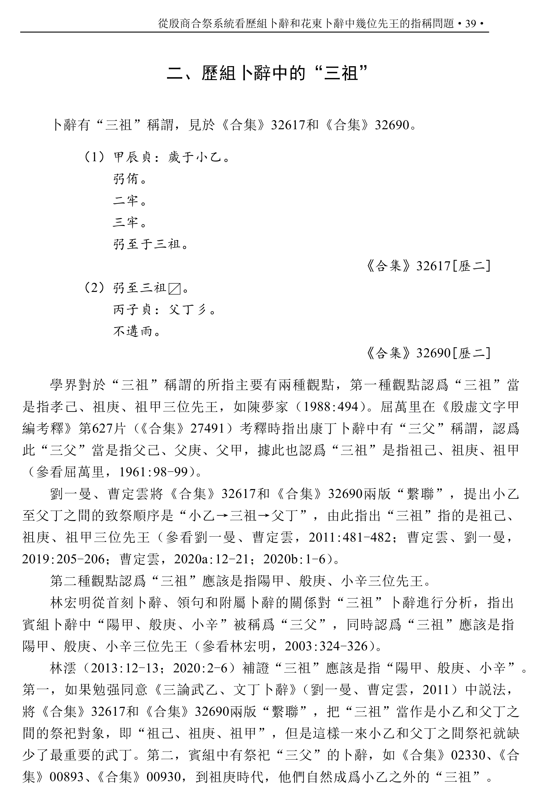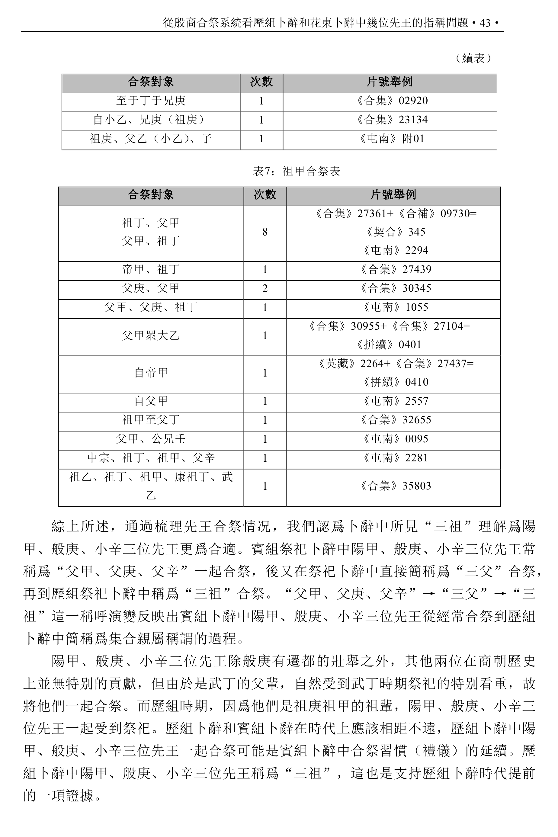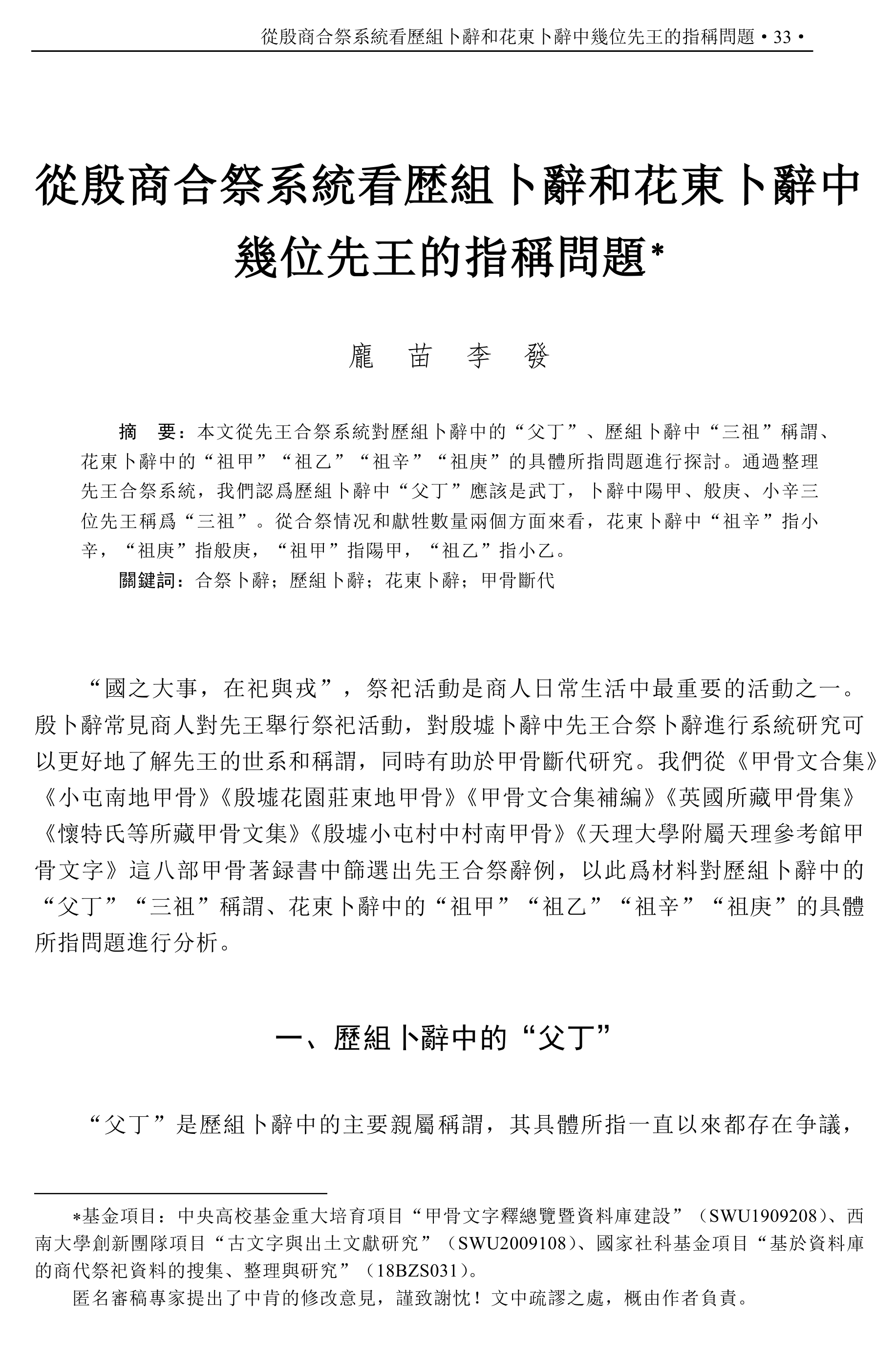 龐苗、李發|從殷商合祭系統看歴組卜辭和花東卜辭中幾位先王的指稱問題