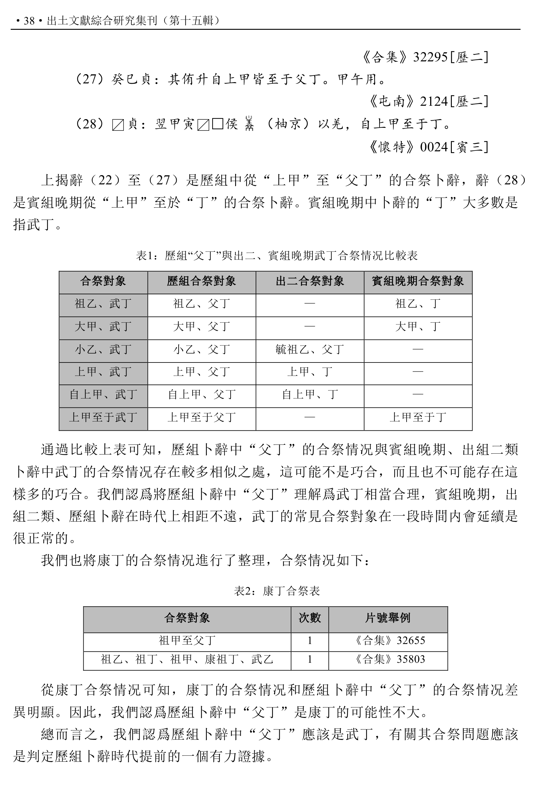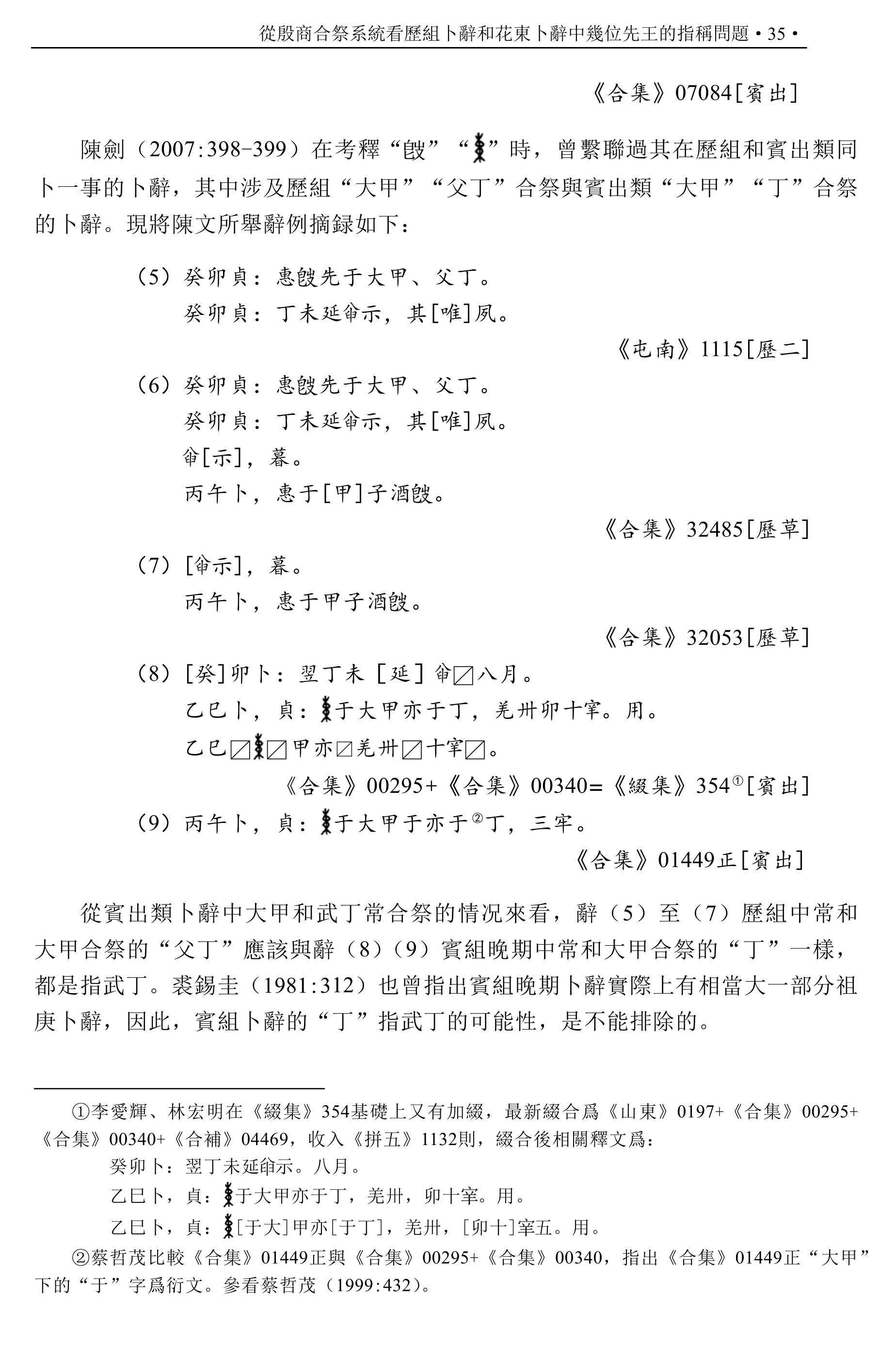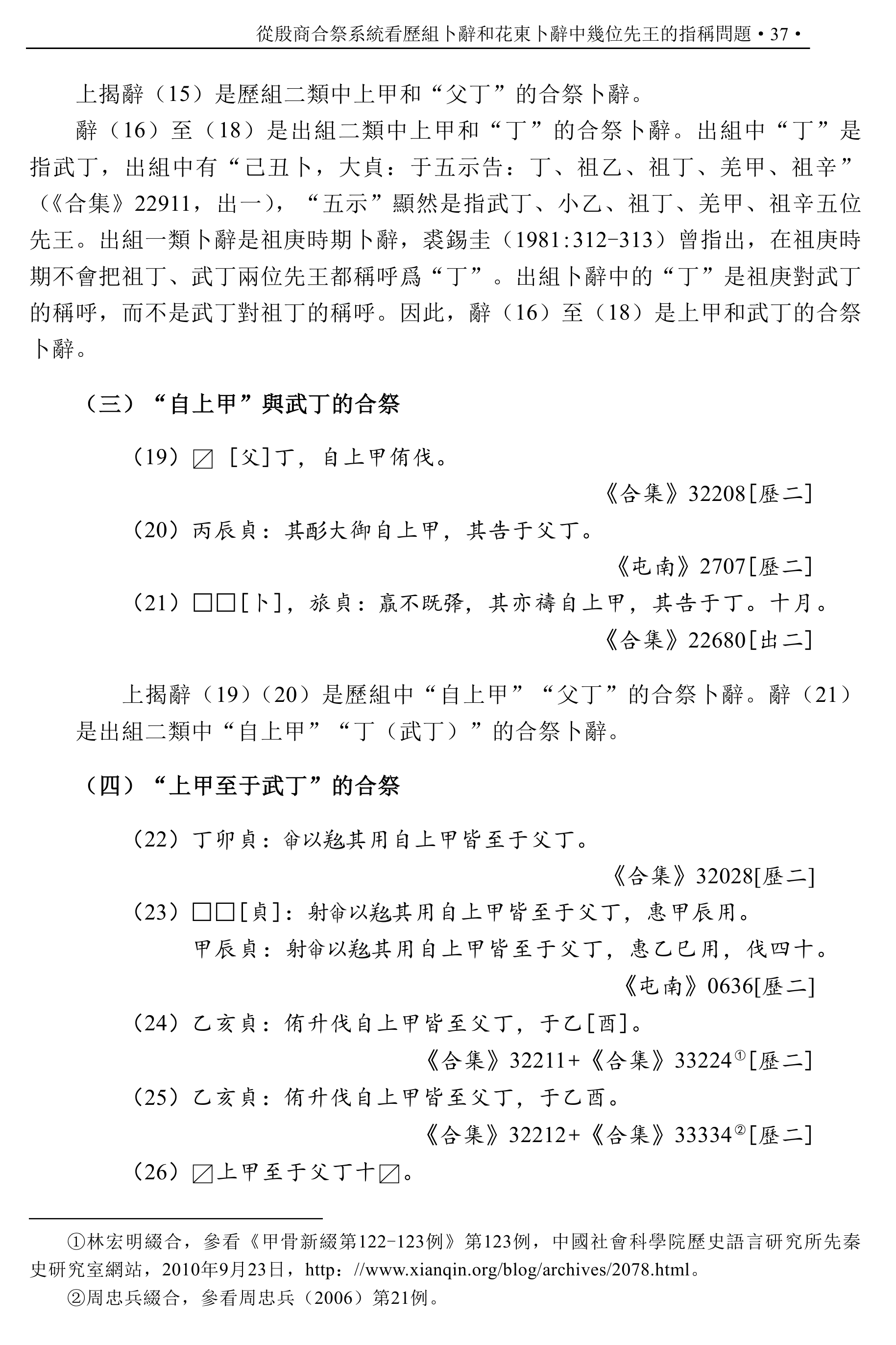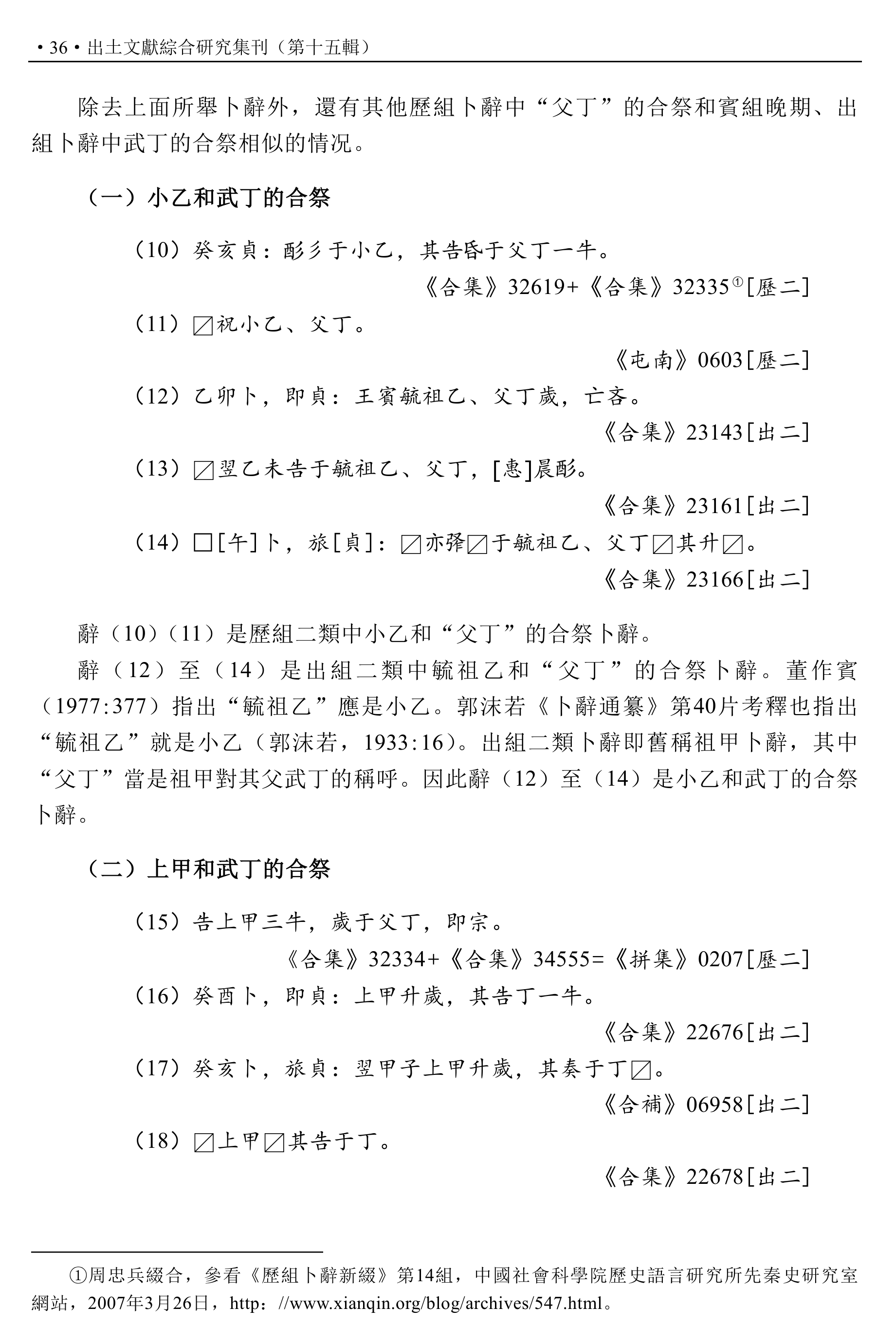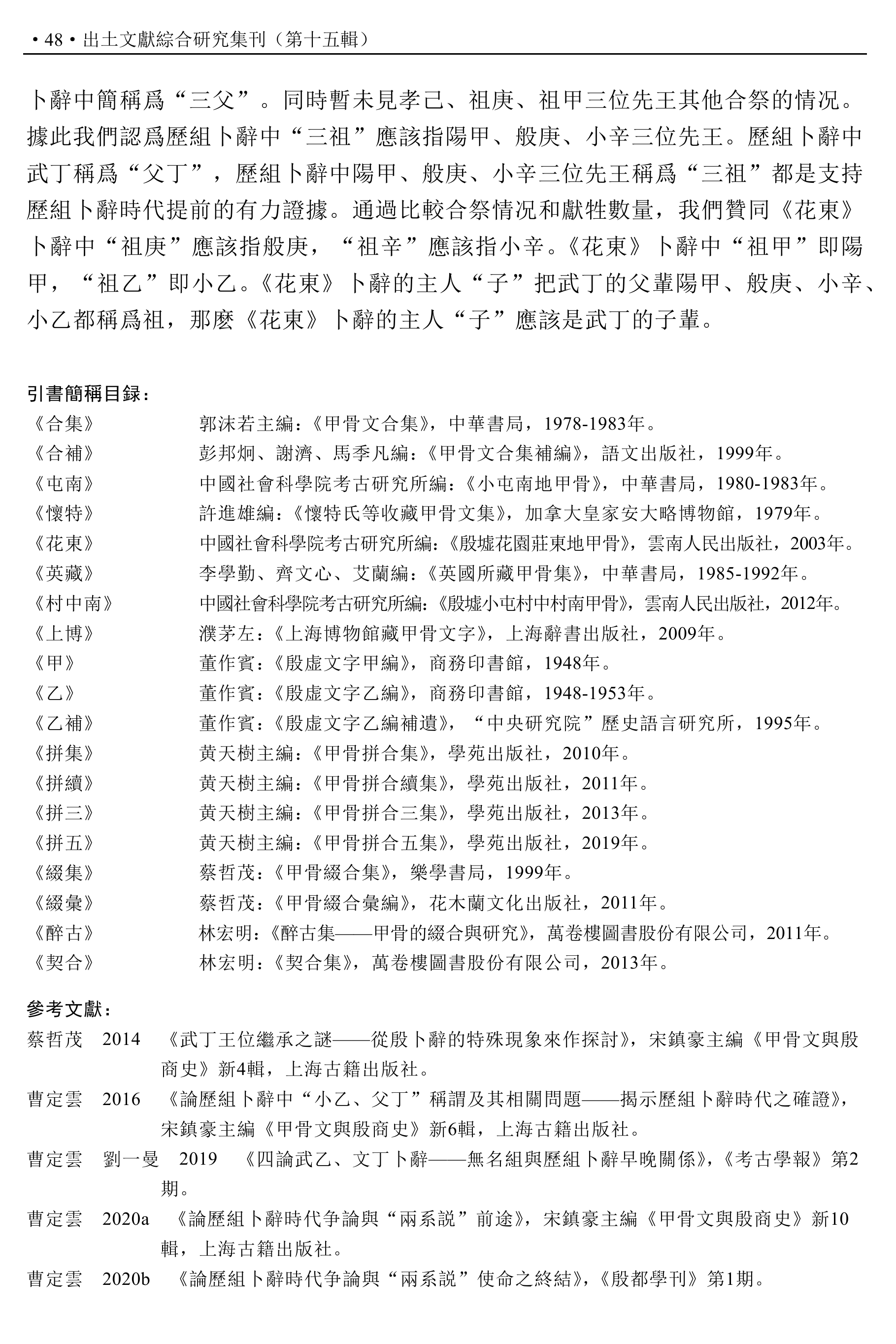 龐苗、李發|從殷商合祭系統看歴組卜辭和花東卜辭中幾位先王的指稱問題