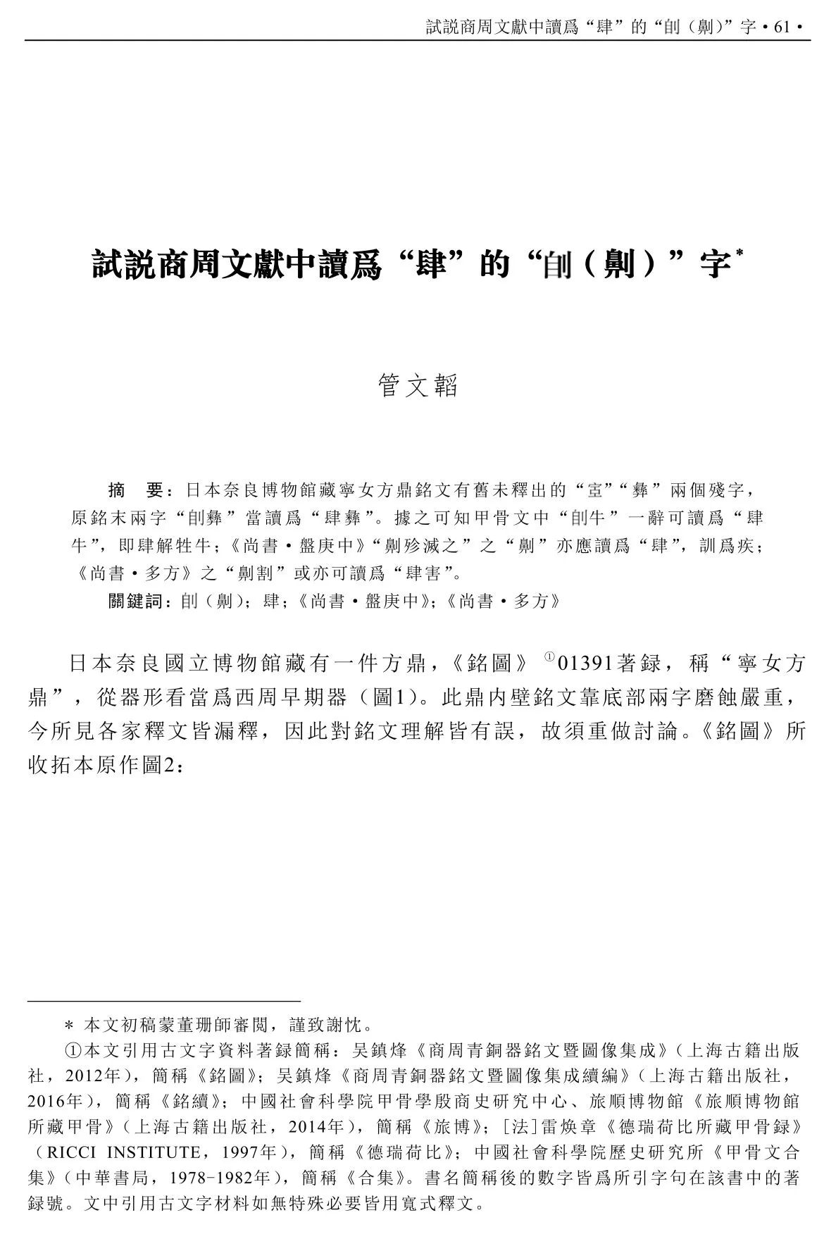 管文韬|試説商周文獻中讀爲“肆”的“ (劓)”字