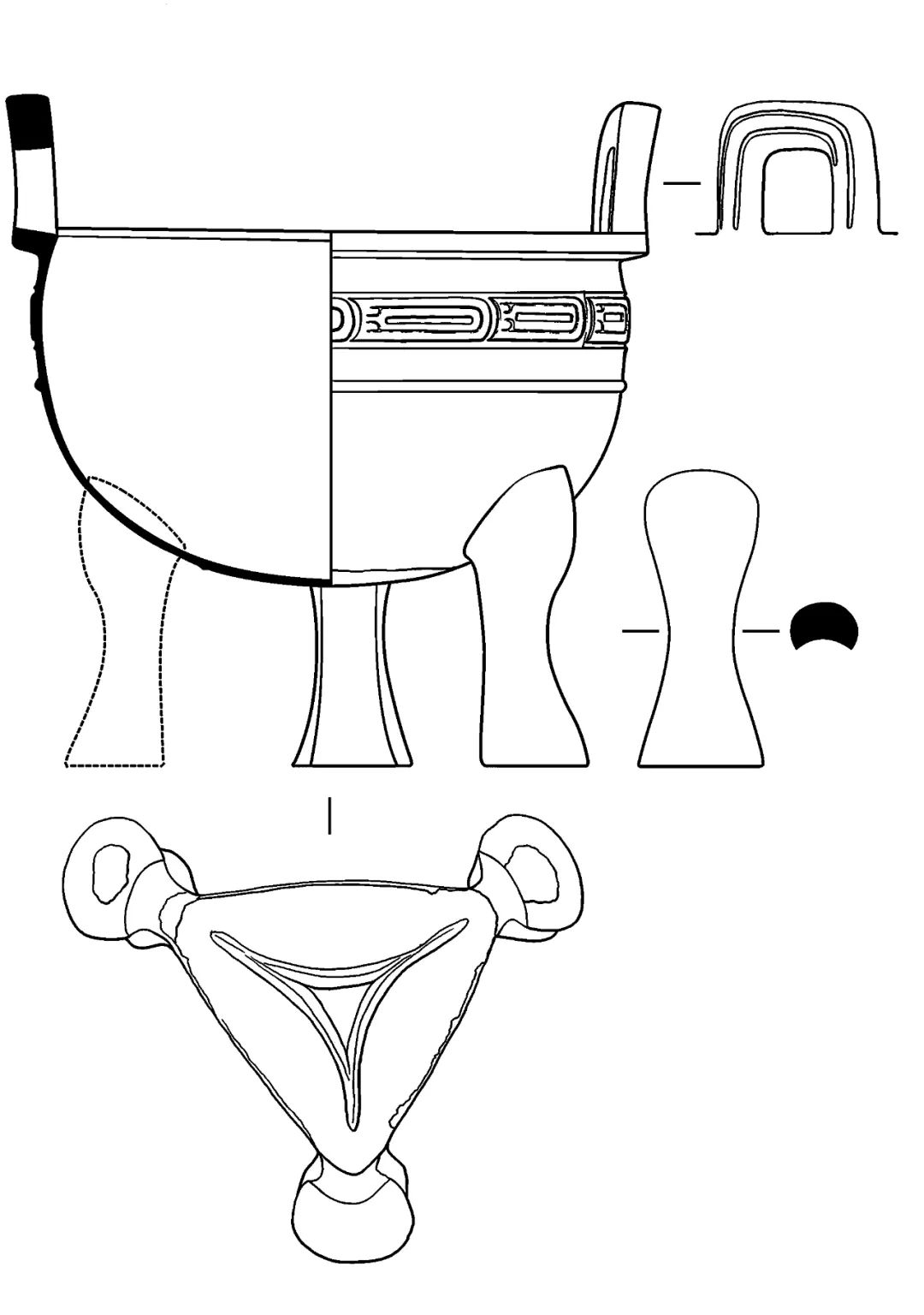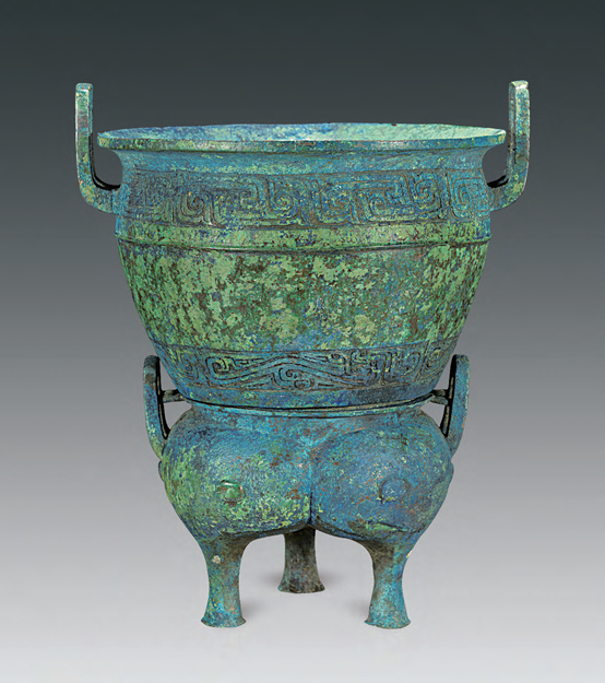 尺度重量:甑口徑31.6、腹最大徑29.8、耳距35.3、腹深20.6、厚0.3~0.4釐米,鬲口徑20、腹最大徑23.2、耳距25.2、腹深9.6、厚0.3~0.4釐米,通高43釐米,甑重5.07、鬲重3.59、總重8.66千克。