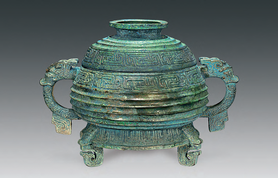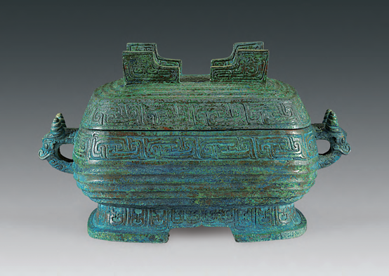 尺度重量:高18.4、寬18.8、耳距32.5、口長22、口寬15.5、腹最大徑25.2、腹深8.9、厚0.3、通高18.4釐米。器蓋重1.12、器身重2.68、總重3.8千克。