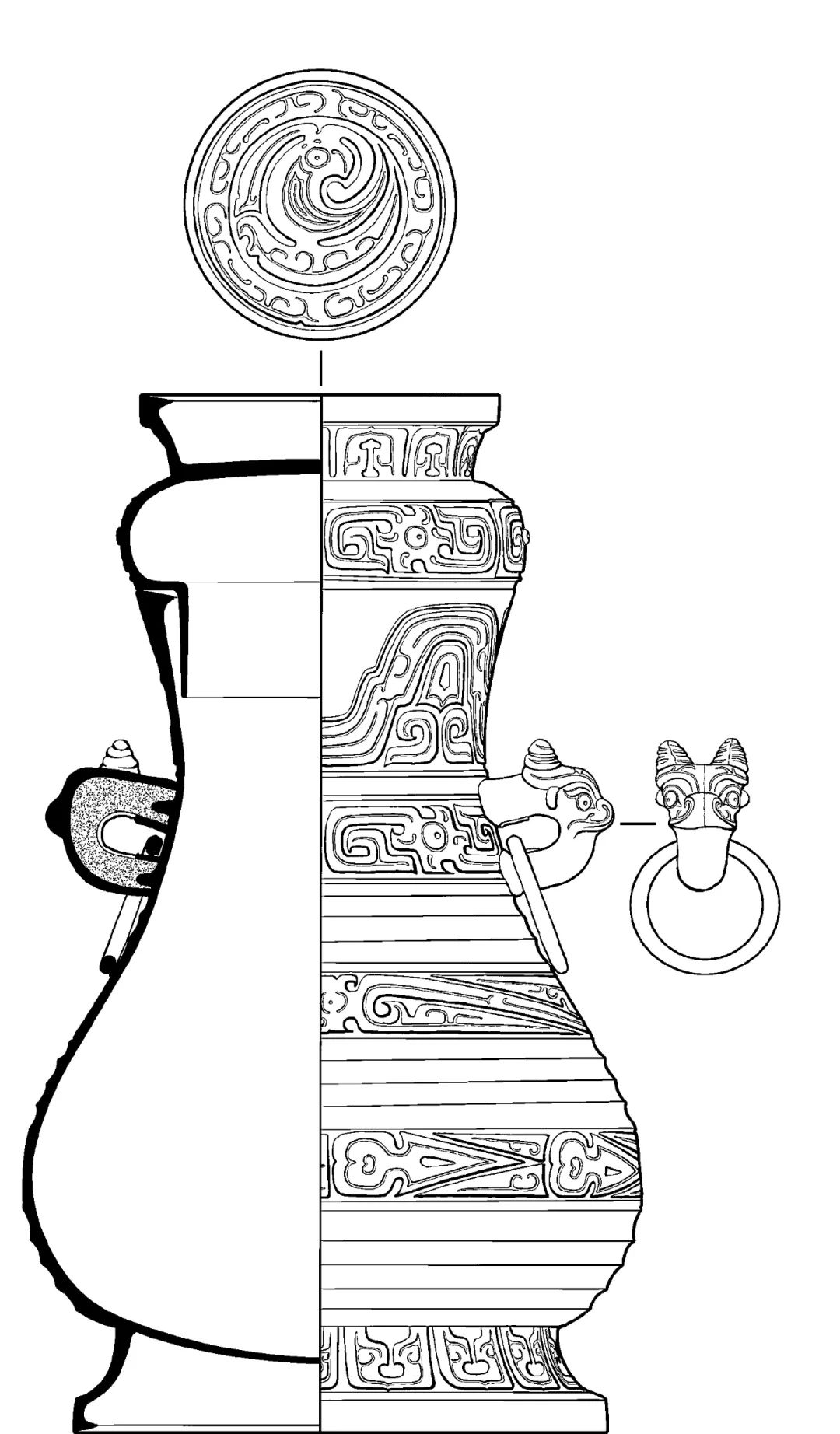 尺度重量:口徑12.1、腹最大徑19.5、底徑17、厚0.4、通高33.1釐米。器蓋重0.94、器身重2.95、總重3.89千克。