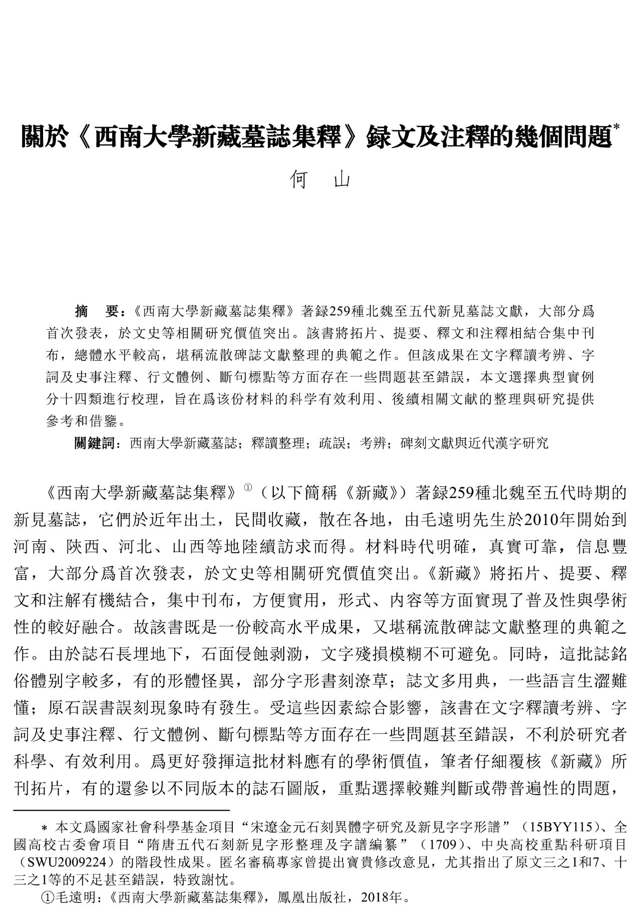 何山 | 關於《西南大學新藏墓誌集釋》録文及注釋的幾個問題