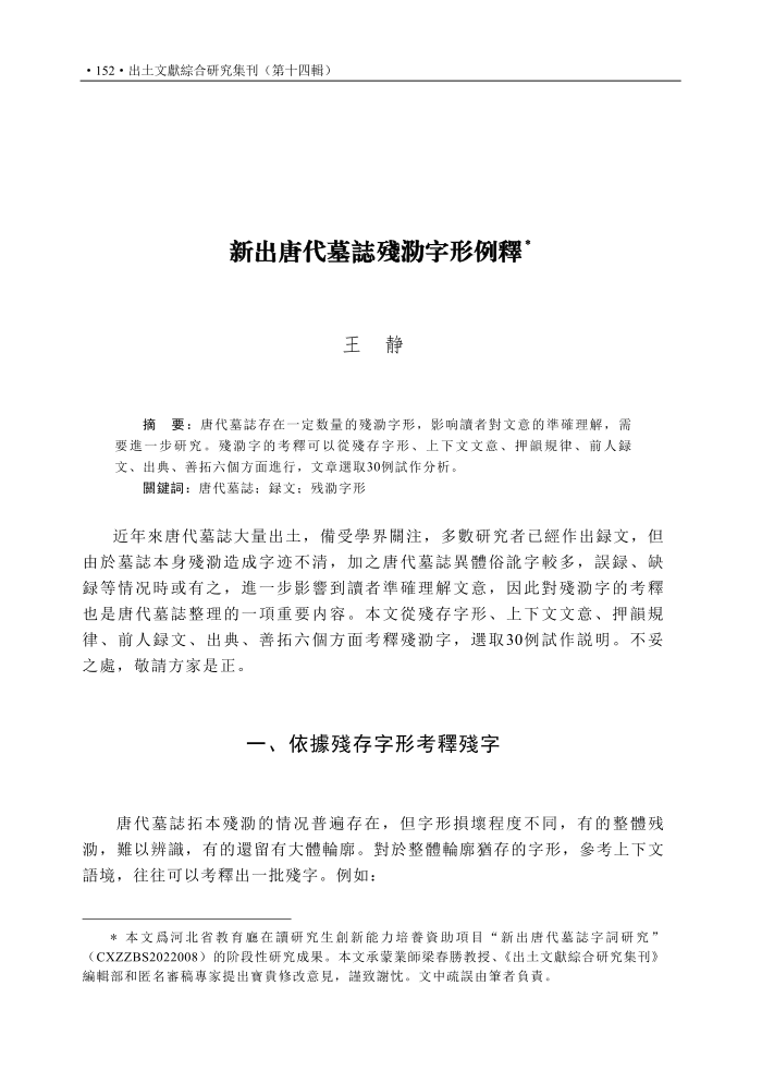 王静|新出唐代墓誌残泐字形例释