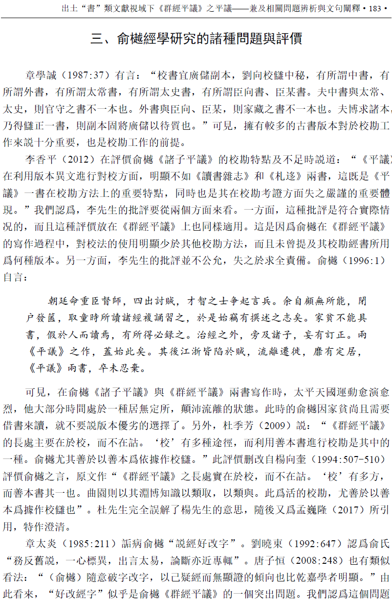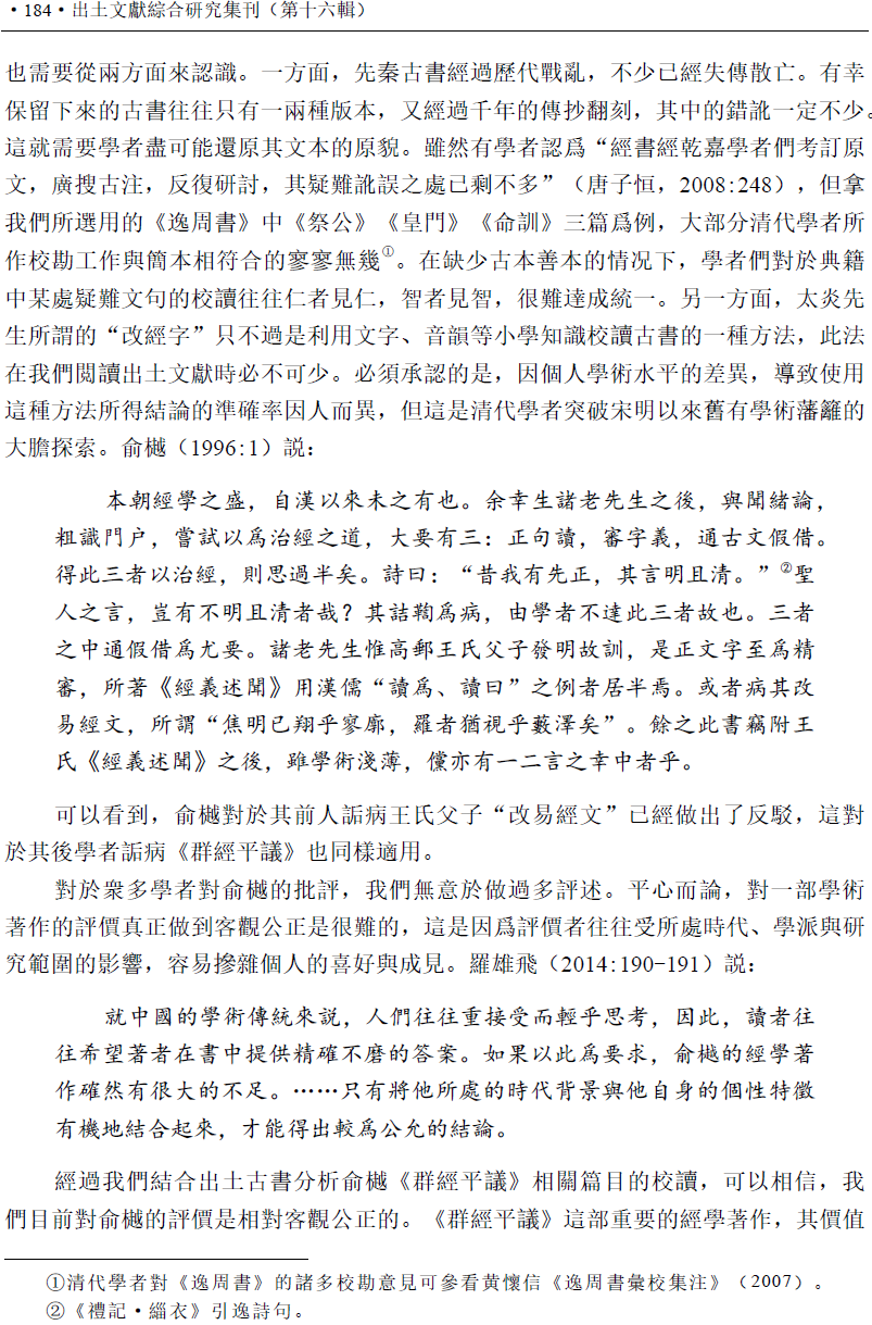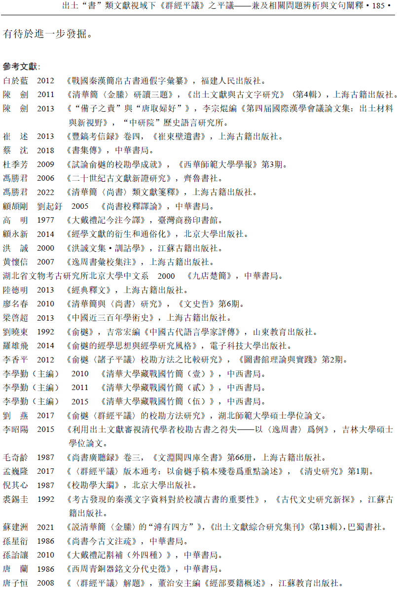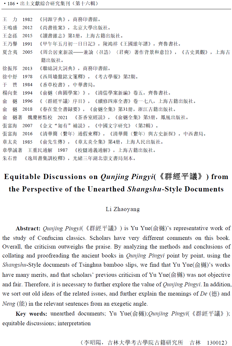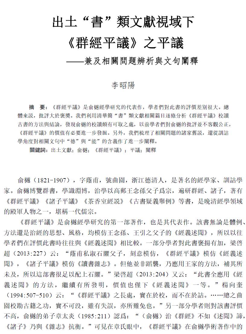 李昭陽 | 出土“書”類文獻視域下《群經平議》之平議——兼及相關問題辨析與文句闡釋