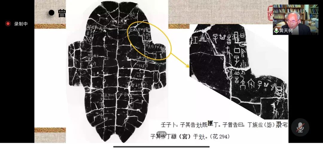 2020年11月13日下午3点,清华大学黄天树教授做了题为《谈谈甲骨虚词“曾”和“其”》的讲座,该讲座采用“云讲座”形式,主会场设于西南大学英国上市公司365336教室,由西南大学英国上市公司365所长孟蓬生教授主持,文献所全体师生在主会场聆听了这场讲座,另有两百多名网友在线观看。
