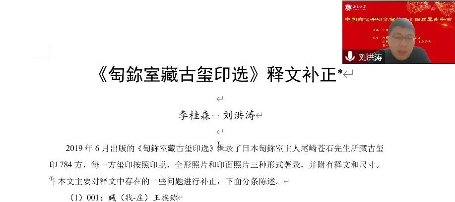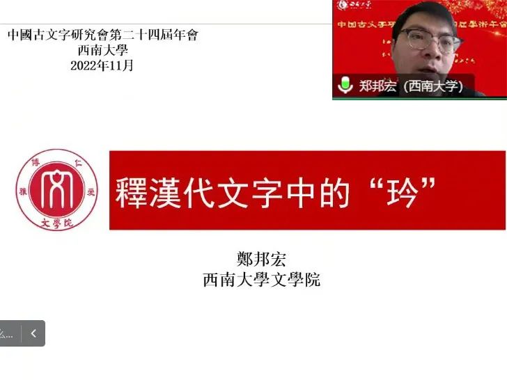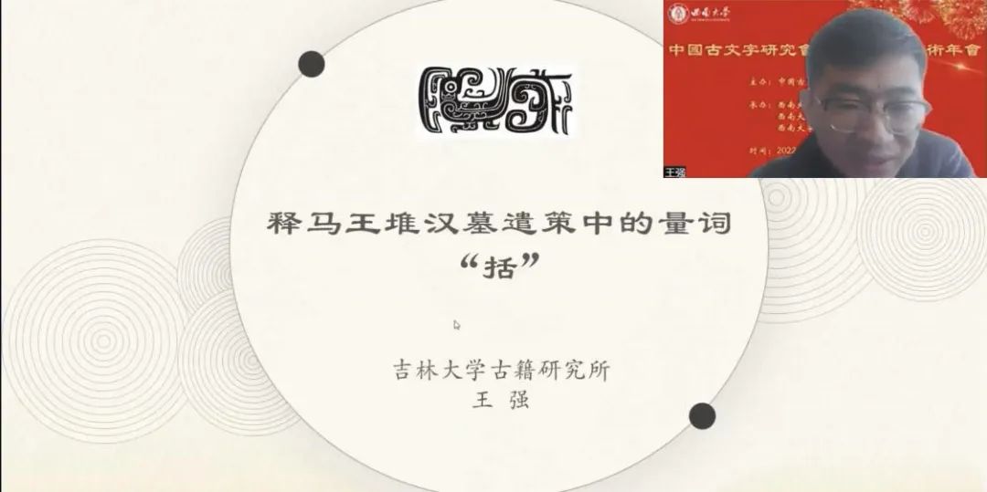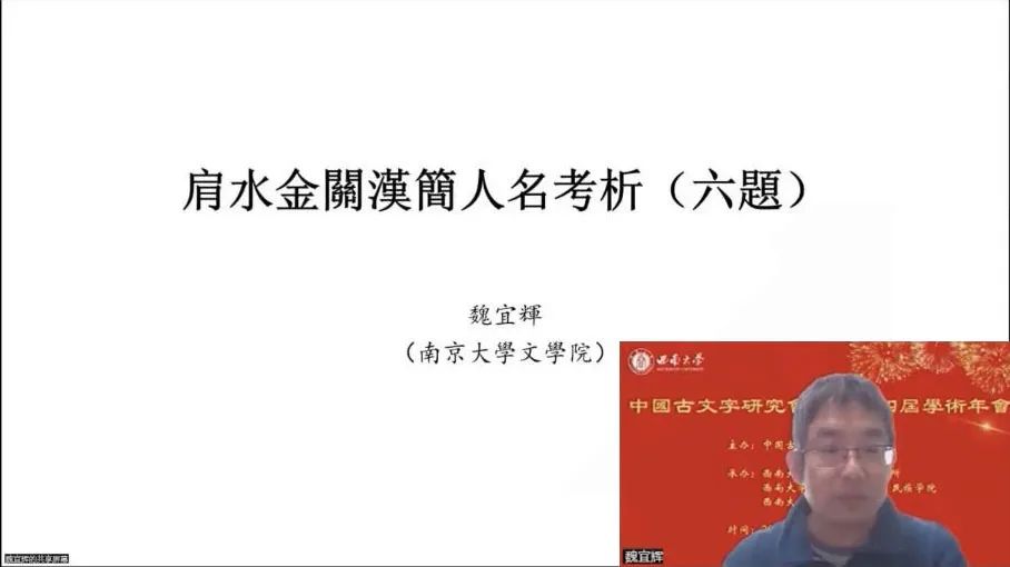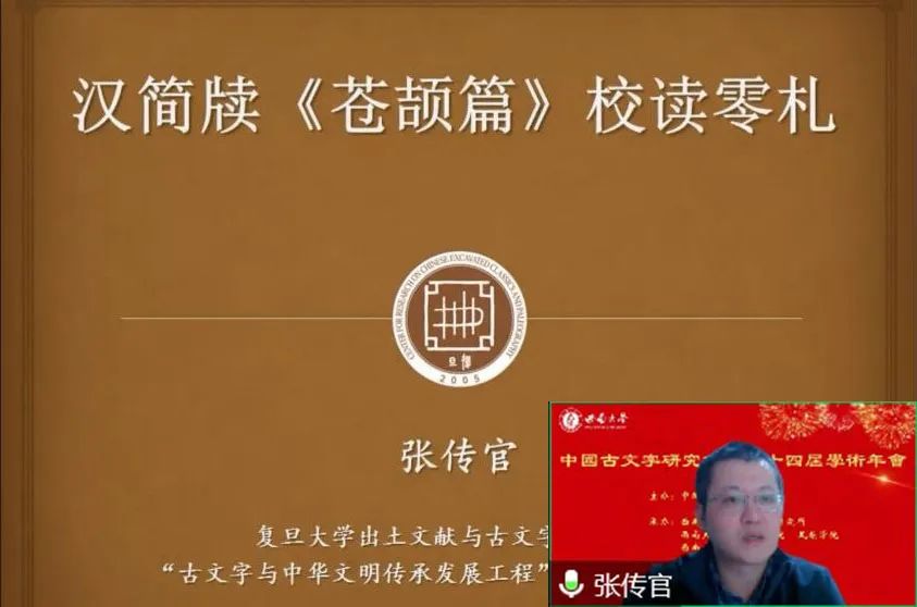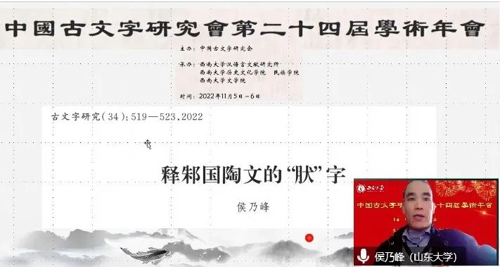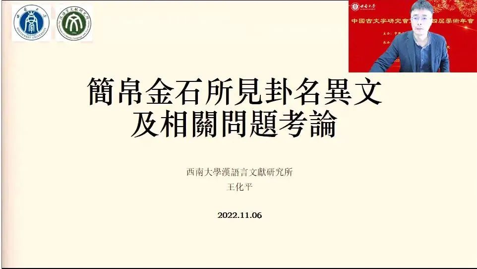 2022年11月5日至6日,由中国古文字研究会主办,西南大学英国上市公司365、西南大学历史文化学院·民族学院和西南大学文学院联合承办的中国古文字研究会第二十四届学术年会在线上隆重举行。“综合组”进行分组报告5场,宣读论文26篇,其中战国文字研究涉及除简帛以外的玺印、玉石、盟书、货币、陶文、漆盘等门类,秦汉文字研究以简牍为主,涉及里耶秦简、岳麓秦简、西北汉简、马王堆简帛、海昏侯汉简、东汉镜铭、镇墓铭文等材料,另外还包括对传抄古文、传世文字、古书校读以及学术史等相关问题的讨论。