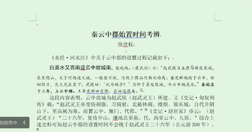 徐世权《秦云中郡始置时间考辨》