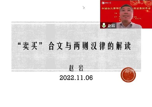 自由讨论环节中,有与会者提出“卖买”合文使用的合文符称作替代符是否更准确的问题,张传官老师对“合文符”“重文符”“替代符”的区别进行了辨析,赞同赵岩老师将所讨论的符号定性为合文符,并提示可补充论说先秦及秦汉时期文献中大量存在“卖”“买”连用的情况。王化平老师提出“和为人卖买”行为中的卖者是否是中介,针对这一问题赵岩老师对卖者与被卖者的关系、性质进行了进一步的解释。