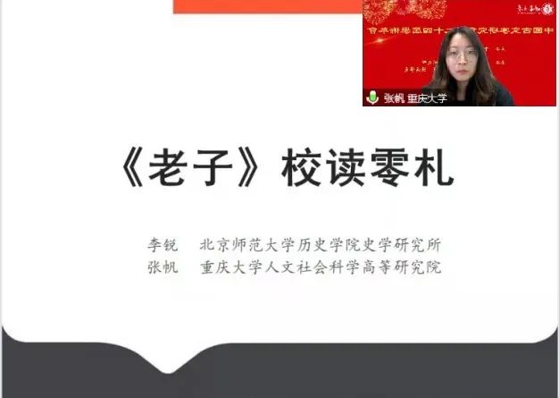 综合组第四场报告会由东北师范大学赵岩老师和南京大学魏宜辉老师主持。福建师范大学林志强老师、福建师范大学刘伟浠老师、台湾暨南国际大学陈美兰老师、华南师范大学商艳涛老师、故宫博物院杨安老师分别作了报告。