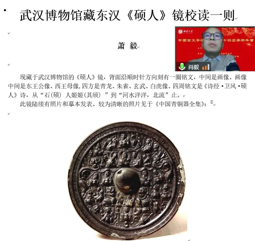 萧毅《武汉博物馆藏东汉〈硕人〉镜校读一则》