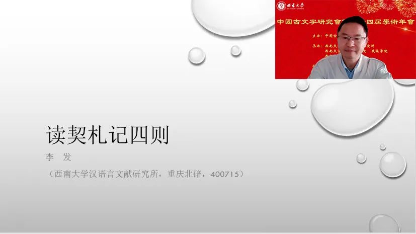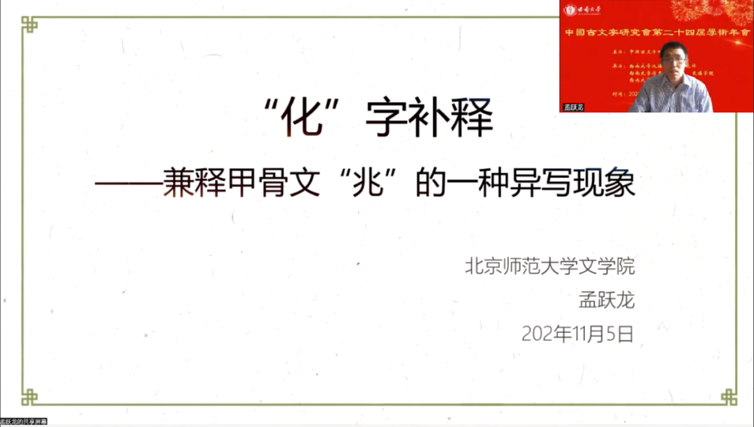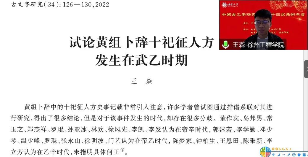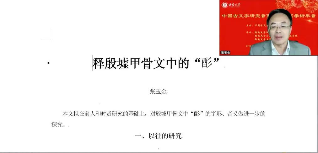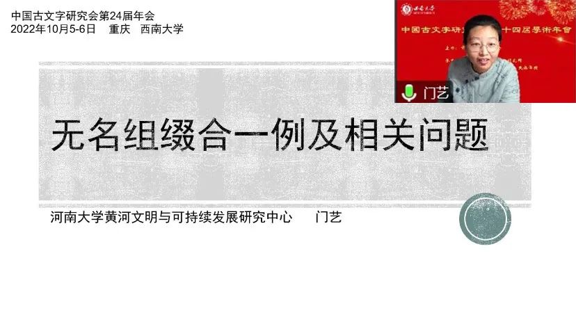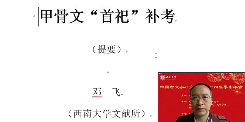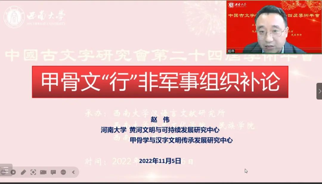 2022年11月5日—6日,由中国古文字研究会主办,西南大学英国上市公司365、西南大学历史文化学院·民族学院和西南大学文学院联合承办的中国古文字研究会第二十四届学术年会在线上隆重举行,其中“甲骨组”共收到29篇论文,分五组进行了报告。