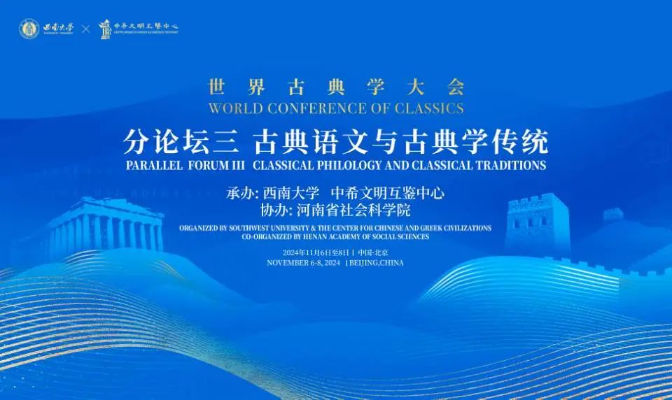 2024年11月6日至8日,由中国社会科学院、中国教育部、中国文化和旅游部、希腊文化部、希腊雅典科学院共同主办的首届“世界古典学大会”在北京召开,主题为“古典文明与现代世界”。西南大学与中希文明互鉴中心共同承办了第三分论坛“古典语文与古典学传统”,聚焦古典语言(古汉语、希腊语和拉丁语)在古典学中的根基作用,旨在打破学科壁垒,推动古典学研究,促进文明传承发展,推动文明交流与互鉴。为此,本公众号将陆续推介第三分论坛的学术观点,以飨读者。