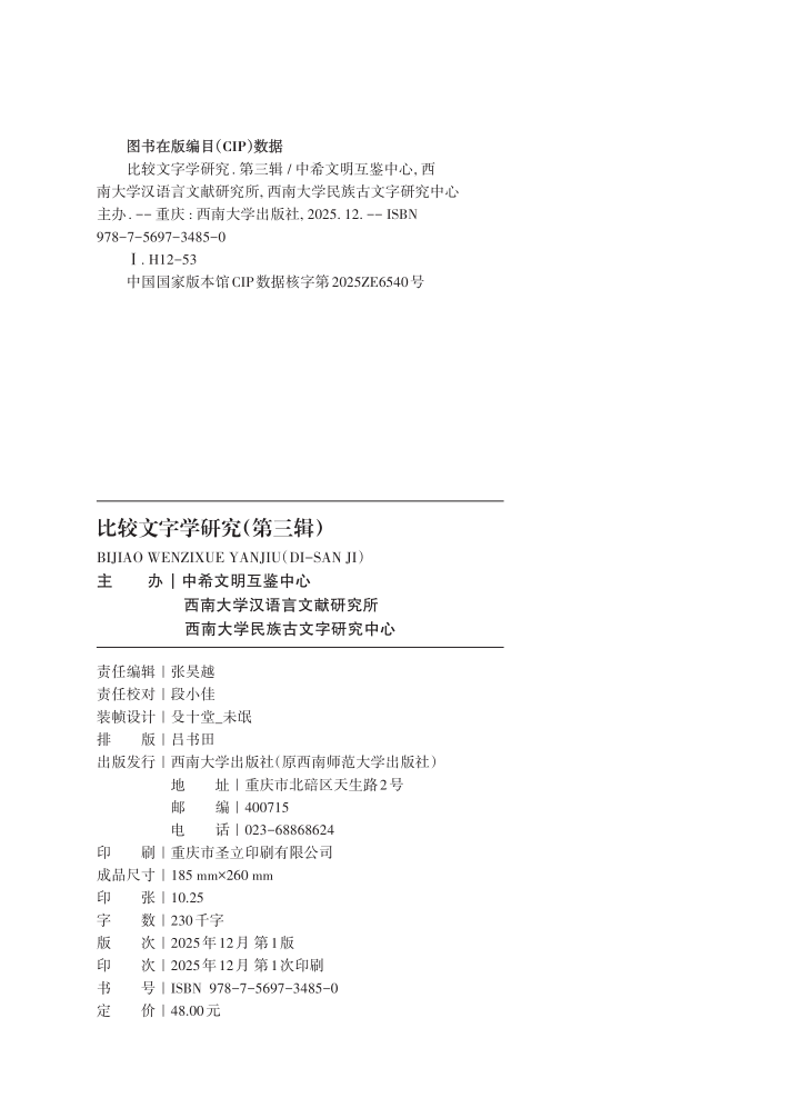 本书于2015年创刊,最初由西南大学英国上市公司365、民族古文字研究中心主办,出版两辑后于2018年暂停。2025年改由与中希文明互鉴中心联合主办出版,特此鸣谢支持。