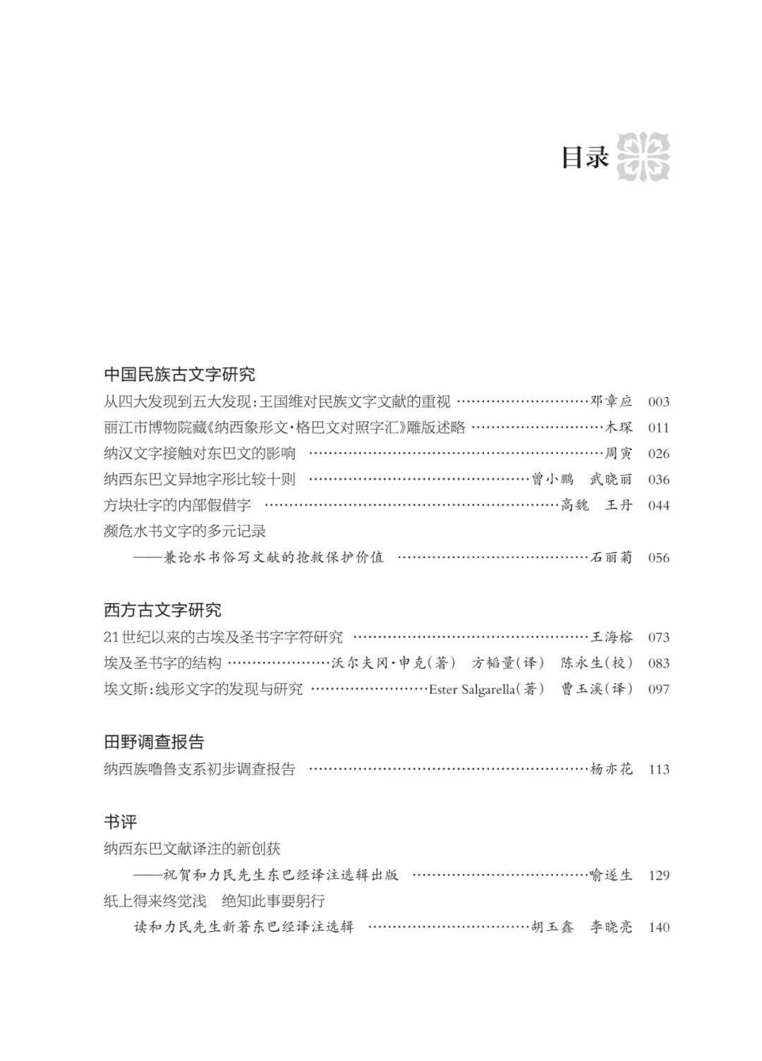 本辑共分四个部分,开篇聚焦“中国民族古文字研究”,呼应王国维先生在上世纪二十年代将“古外族遗文”列为中国五大新发现的卓见。作为 “活着的象形文字”,东巴文至今仍以连环画般的形态在民间使用,与此同时,东巴祭司持续对其与哥巴文进行规范,使古老的文字在新时代展现出卓越的生命力与系统性。纳西族的东巴文与水族的水书虽同属自源文字,但却与汉字互动频繁—— 东巴文中存在文字混用现象,水书与汉字融合演化出独特的 “汉字式俗写水字”;方块壮字与汉字更是展现出惊人的联系,它彰显借源智慧——假汉字之音形义构筑壮语符号,成为中华文化交融的结晶。这些民族文字跳出汉字的宏大叙事框架,积极参与中华民族共同体的文化构建,共同谱写多元包容、和谐共生的中华文化新篇章。
