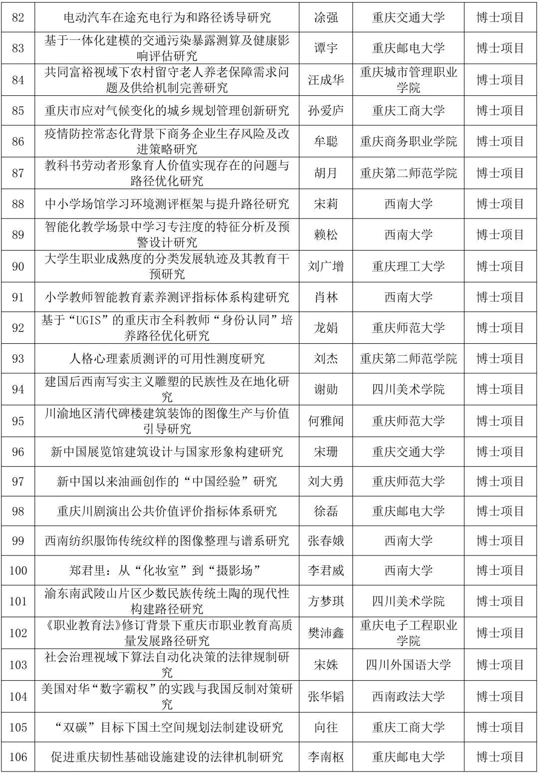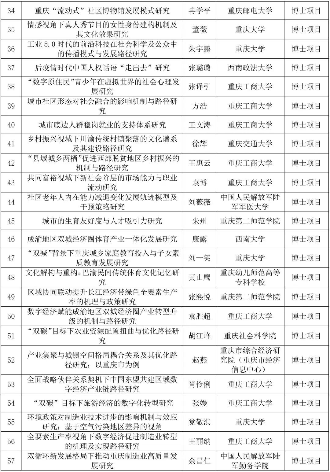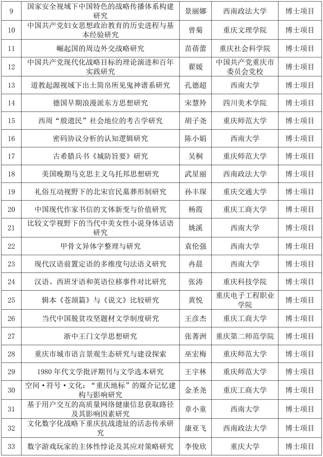 附件:2022年度重庆市社会科学规划博士和培育项目立项名单