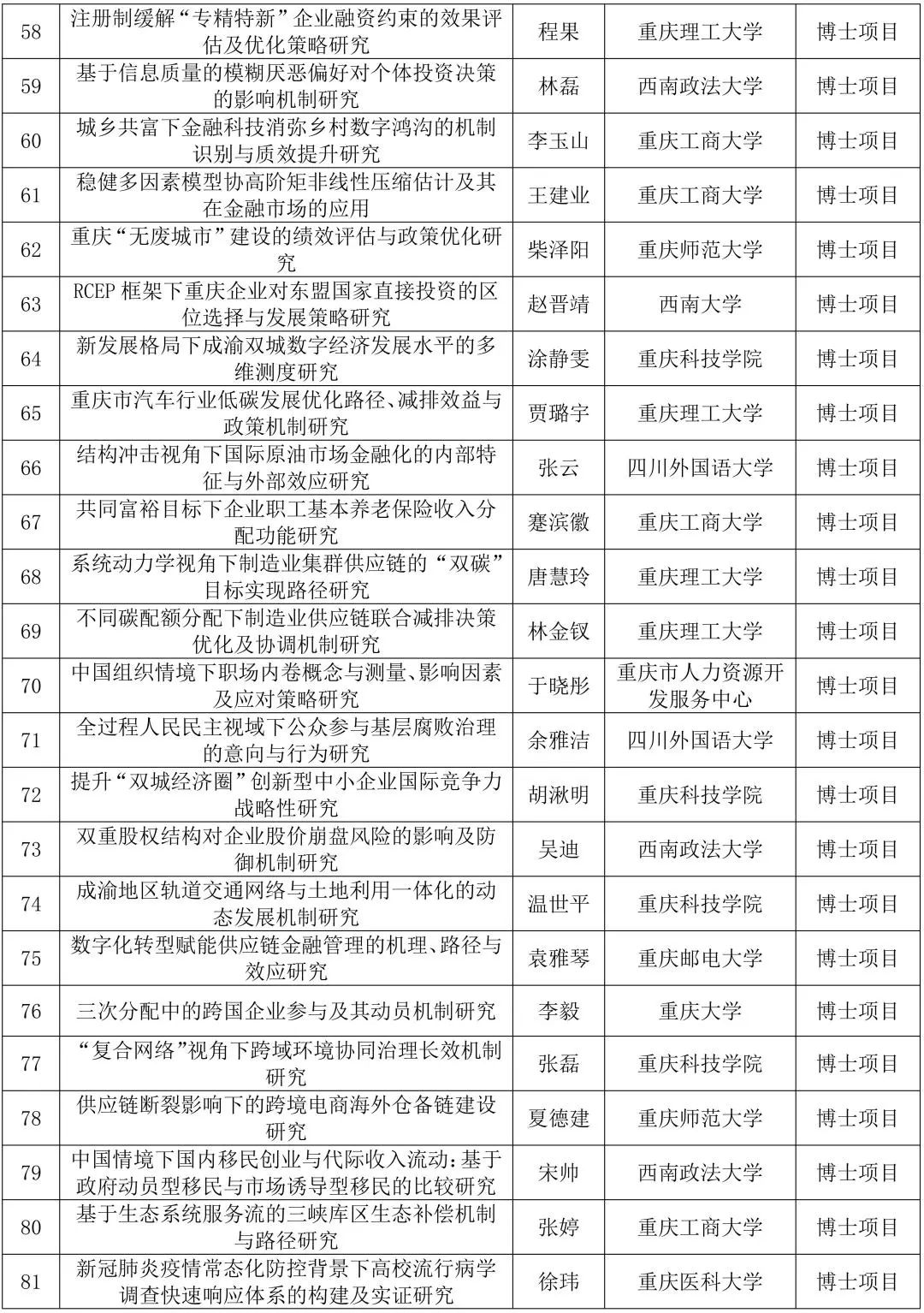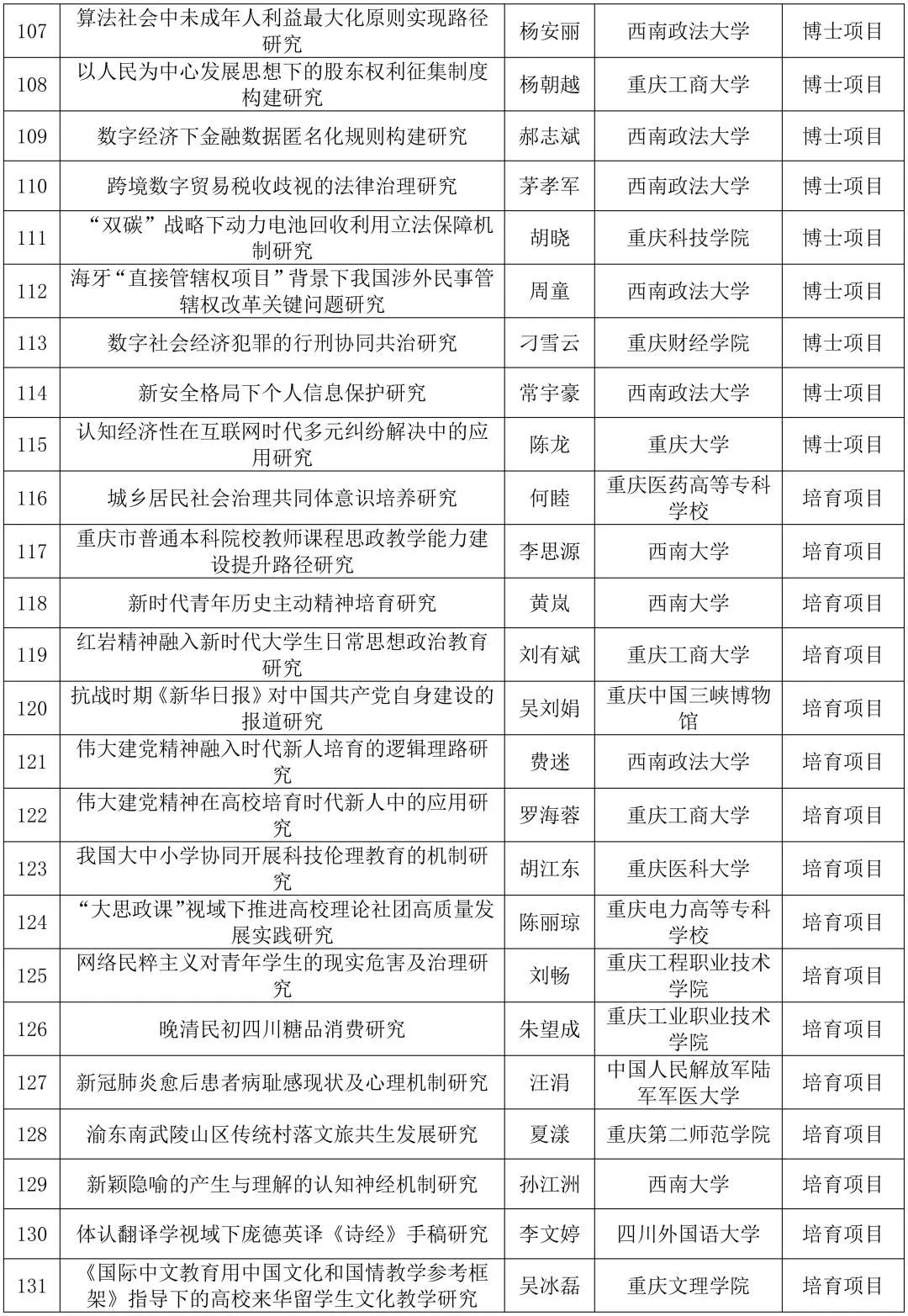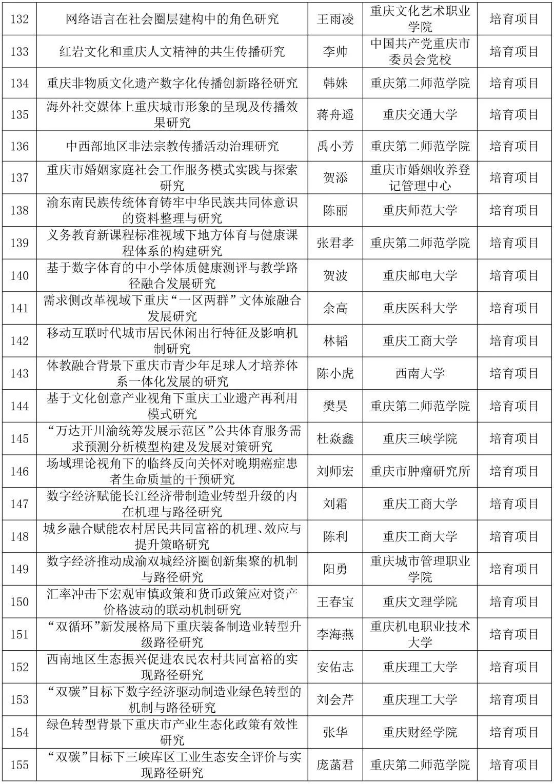 附件:2022年度重庆市社会科学规划博士和培育项目立项名单