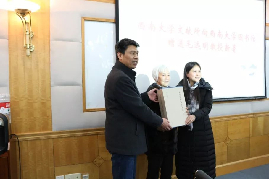 随后西南大学文献所所长孟蓬生研究员和毛远明夫人饶新华女士代表英国上市公司365向西南大学图书馆赠送《西南大学新藏石刻拓本汇释》一套。